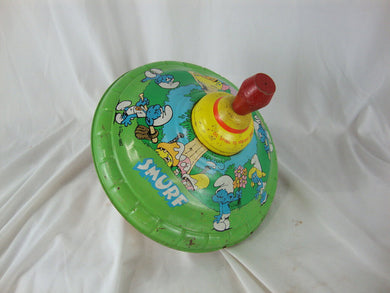 Vintage 1982 Ohio Art SMURF Tin Litho Spinning Large Metal Top