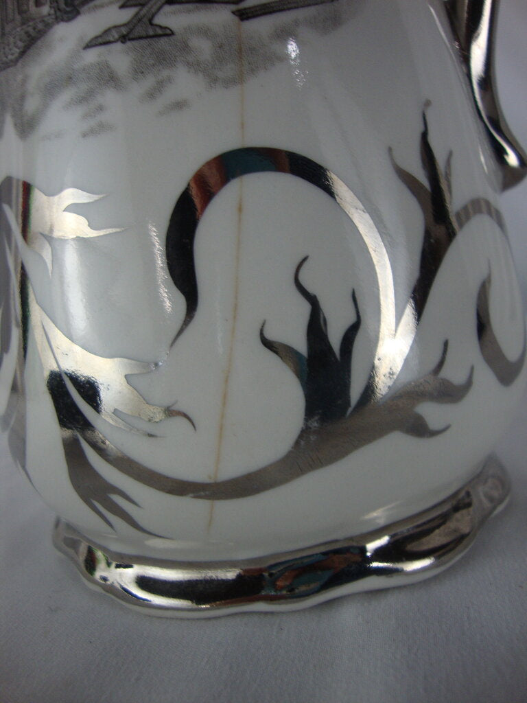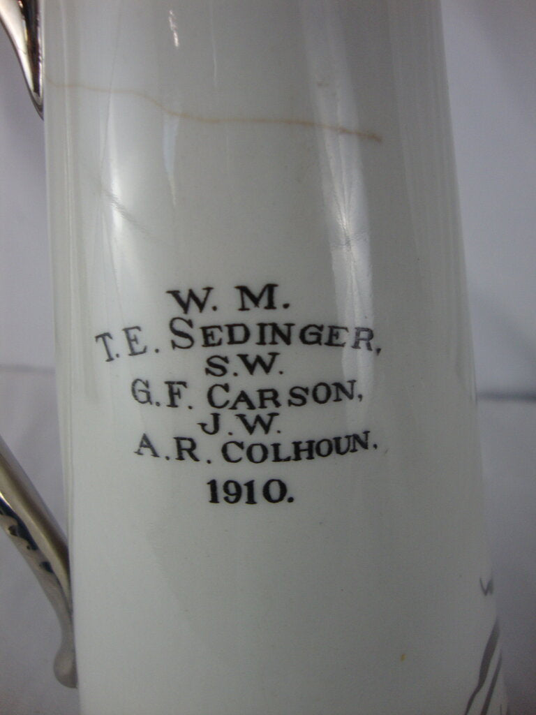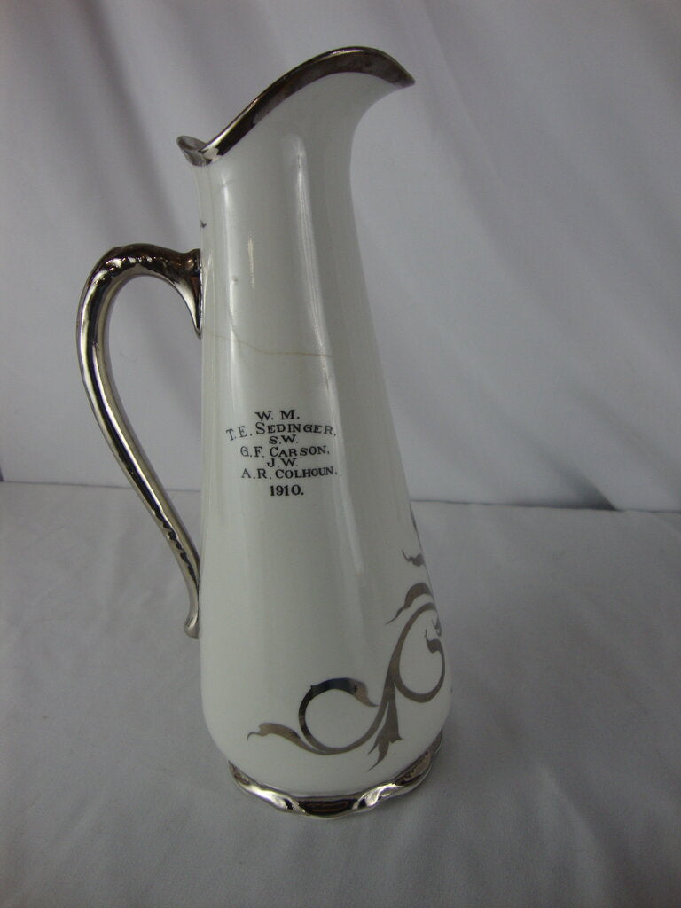 1910 Masonic Lodge No 9 Trenton NJ Ceramic Fluted Ewer Pitcher