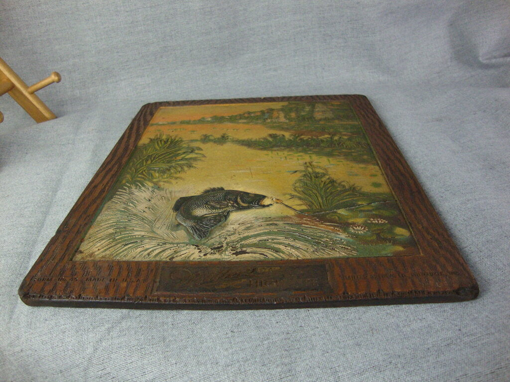 1940's era Miller High Life USA composite wood look bass fishing scene with bass jumping to catch lure in foreground with back water and tree. Sign has wear/tear, finish loss, top hole with string for hanging and measures about 13 1/2" height by 10 1/2" width by 1/4" depth. If you choose to arrange to have an item shipped please make sure to insure the shipment as we are not responsible for damage that occurs in shipping. All items are sold “As Is” and all sales are final. Most pieces are one of a kind and can not be replaced. We will give you as much information as possible regarding the pieces condition including supplying additional pictures if needed. Due to the nature of antique and vintage items there may be blemishes, nicks or other imperfections as expected with age and use. If you want more information about an item, such as additional images or condition, please inquire! All items are located in our store at Standpipe Antiques, 502 O Neal Street, Belton, SC, 29627. Our hours are Wednesday through Saturday 10am to 5pm, Sundays 12-5pm. Come by and see us!