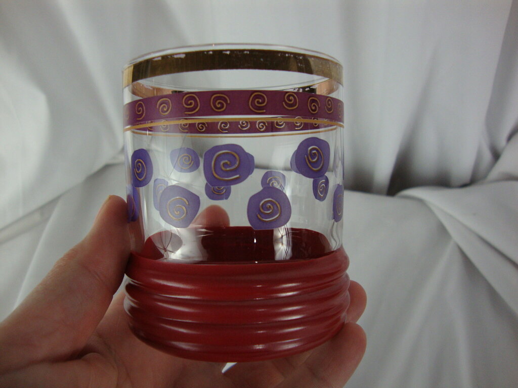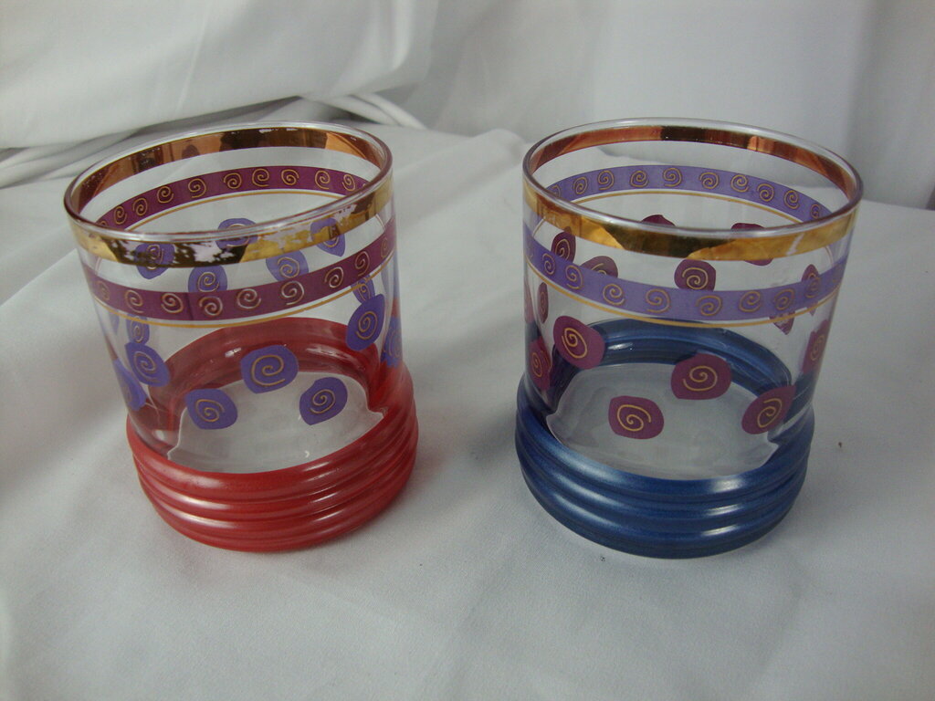 1950s era Sokura Sango by Sue Lipton red blue rocks glasses with fun circles with inside spirals. Glasses have wear/tear, finish loss per photos and measure about 4" height by 3" top diameters. If you choose to arrange to have an item shipped please make sure to insure the shipment as we are not responsible for damage that occurs in shipping. All items are sold “As Is” and all sales are final. Most pieces are one of a kind and can not be replaced. We will give you as much information as possible regarding the pieces condition including supplying additional pictures if needed. Due to the nature of antique and vintage items there may be blemishes, nicks or other imperfections as expected with age and use. If you want more information about an item, such as additional images or condition, please inquire! All items are located in our store at Standpipe Antiques, 502 O Neal Street, Belton, SC, 29627. Our hours are Wednesday through Saturday 10am to 5pm and Sundays 12-5pm. Come by and see us!