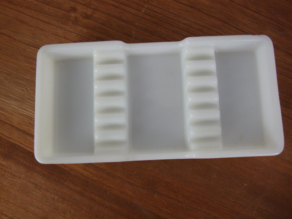 1950s white milk glass The American Cabinet Co. Two Rivers WI double ribbed dental equipment tray that can now be used for whatever you would like! Tray has wear/tear, stains, flea bites around edges and measures about 1" height by 8" length by 4" width. If you choose to arrange to have an item shipped please make sure to insure the shipment as we are not responsible for damage that occurs in shipping. All items are sold “As Is” and all sales are final. Most pieces are one of a kind and can not be replaced. We will give you as much information as possible regarding the pieces condition including supplying additional pictures if needed. Due to the nature of antique and vintage items there may be blemishes, nicks or other imperfections as expected with age and use. If you want more information about an item, such as additional images or condition, please inquire! All items are located in our store at Standpipe Antiques, 502 O Neal Street, Belton, SC, 29627. Our hours are Wednesday through Friday 10am to 6pm, Saturday 10am to 5pm and Sundays 12-5pm. Come by and see us!