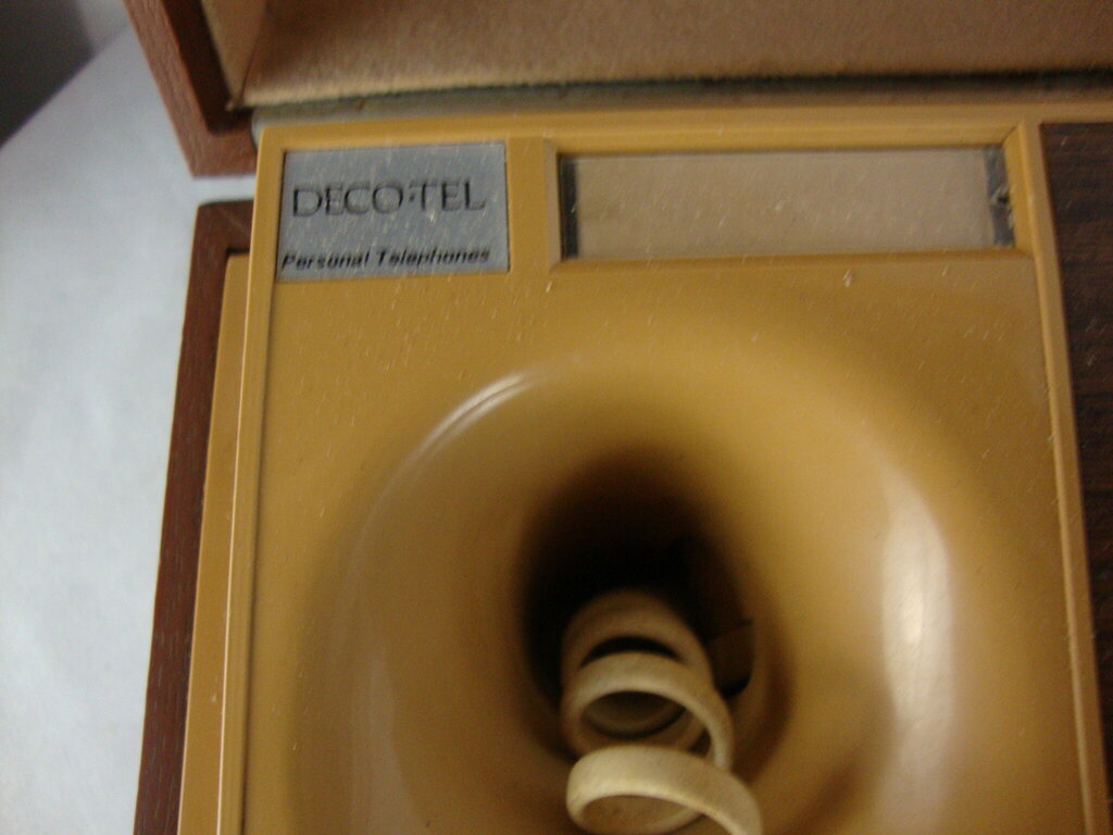 1970's fabulous Deco-Tel Western Electric Serial #839510 executive landline telephone in decorative wood hinged box. Phone is untested, box has wear/tear, dings, no landline cord and box measures about 5" height by 10" length by 8" depth. If you choose to arrange to have an item shipped please make sure to insure the shipment as we are not responsible for damage that occurs in shipping. All items are sold “As Is” and all sales are final. Most pieces are one of a kind and can not be replaced. We will give you as much information as possible regarding the pieces condition including supplying additional pictures if needed. Due to the nature of antique and vintage items there may be blemishes, nicks or other imperfections as expected with age and use. If you want more information about an item, such as additional images or condition, please inquire! All items are located in our store at Standpipe Antiques, 502 O Neal Street, Belton, SC, 29627. Our hours are Wednesday through Saturday 10am to 5pm and Sundays 12-5pm so come by and see us!