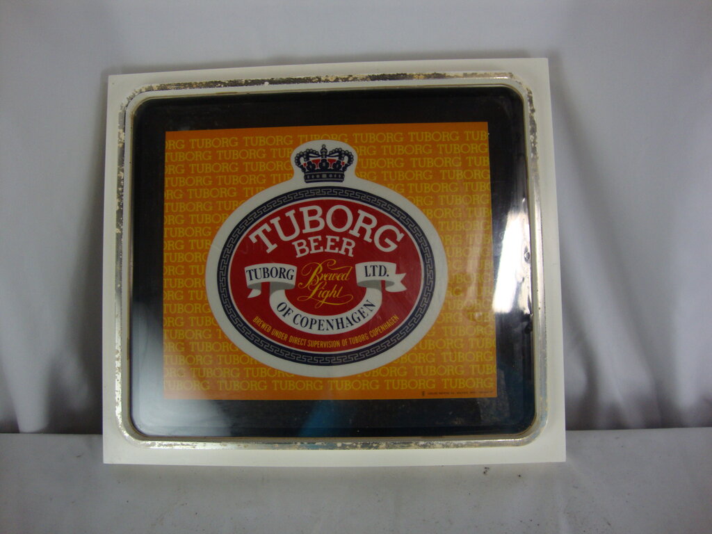 Vintage man cave lighted beer bar sign from Tuborg Beer of Copenhagen with vibrant yellow Tuborg backdrop with red middle with top crown. Sign has wear/tear, finish loss, scratches, crack in front corner per photo and measures 4" depth by 16" width by 14" height. If you choose to arrange to have an item shipped please make sure to insure the shipment as we are not responsible for damage that occurs in shipping. All items are sold “As Is” and all sales are final. Most pieces are one of a kind and can not be replaced. We will give you as much information as possible regarding the pieces condition including supplying additional pictures if needed. Due to the nature of antique and vintage items there may be blemishes, nicks or other imperfections as expected with age and use. If you want more information about an item, such as additional images or condition, please inquire! All items are located in our store at Standpipe Antiques, 502 O Neal Street, Belton, SC, 29627. Our hours are Wednesday through Saturday 10am to 5pm and Sundays 12-5pm. Come by and see us!