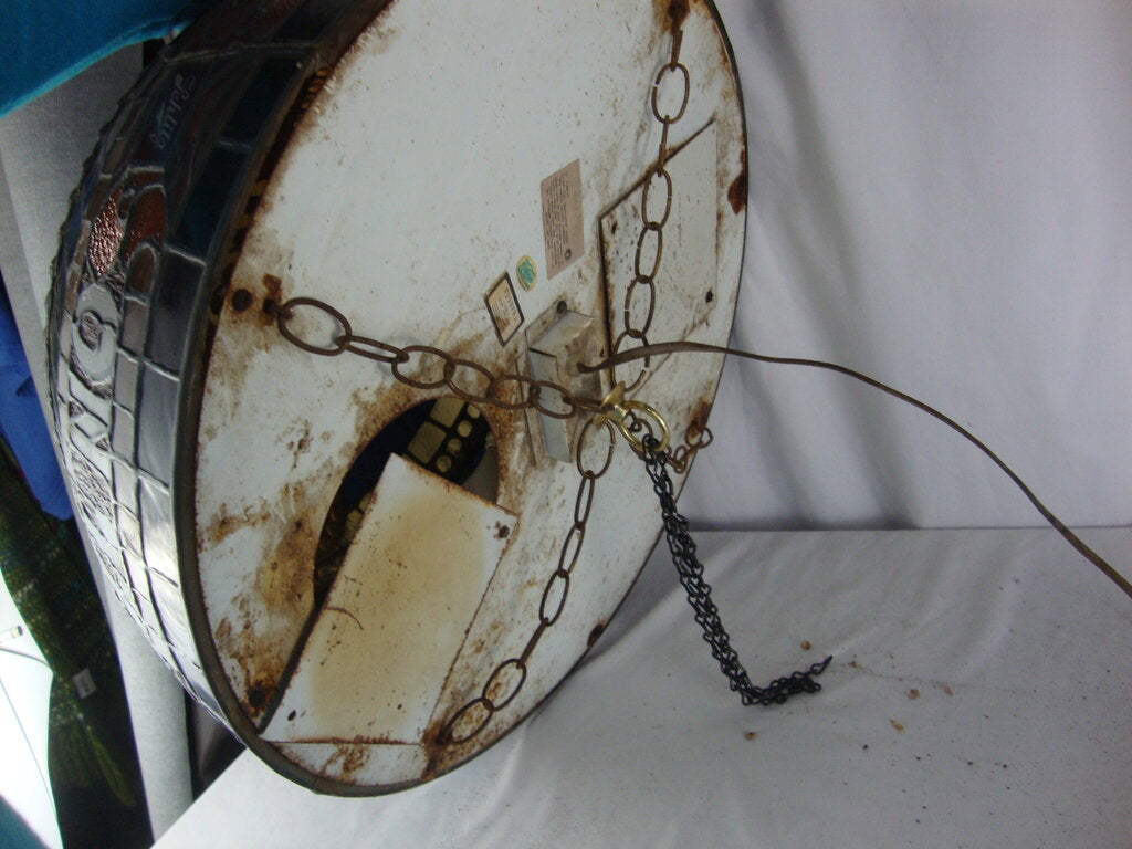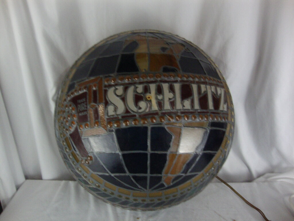 *THIS ITEM IS FOR PICKUP ONLY!* 1977 Schlitz Beer Tiffany style half globe lighted bar man cave hanging electric plug in light with stained glass look red white blue continent outlined with large red Schlitz banner with top Schlitz On Tap text. Light has wear/tear, finish loss, stains, rust and measures about 12" height by 21" top diameter. If you choose to arrange to have an item shipped please make sure to insure the shipment as we are not responsible for damage that occurs in shipping. All items are sold “As Is” and all sales are final. Most pieces are one of a kind and can not be replaced. We will give you as much information as possible regarding the pieces condition including supplying additional pictures if needed. Due to the nature of antique and vintage items there may be blemishes, nicks or other imperfections as expected with age and use. If you want more information about an item, such as additional images or condition, please inquire! All items are located in our store at Standpipe Antiques, 502 O Neal Street, Belton, SC, 29627. Our hours are Wednesday through Saturday 10am to 5pm and Sundays 12-5pm. Come by and see us!
