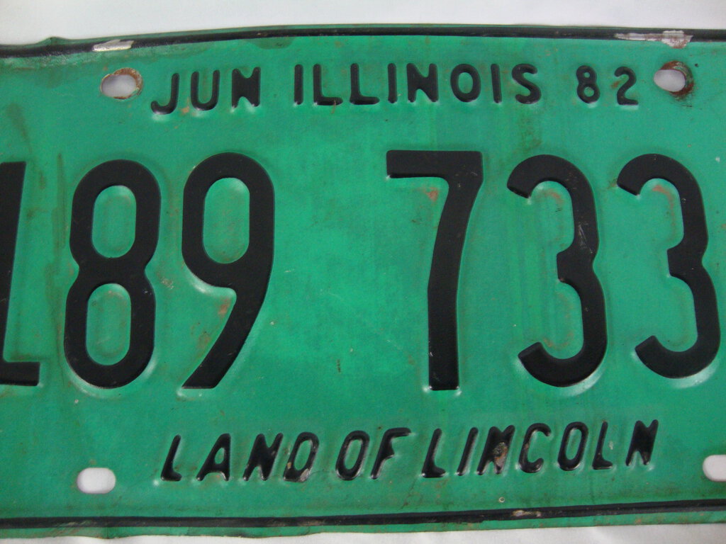Add to your license plate collection with this fun matched green circa 1982 June Illinois matched license plates with 189 733 B with green body and dark stripe and letters/numbers. Rust/tarnish, bent corners, dents exist and plates are about 6" height by 11 1/2" length. If you choose to arrange to have an item shipped please make sure to insure the shipment as we are not responsible for damage that occurs in shipping. All items are sold “As Is” and all sales are final. Most pieces are one of a kind and can not be replaced. We will give you as much information as possible regarding the pieces condition including supplying additional pictures if needed. Due to the nature of antique and vintage items there may be blemishes, nicks or other imperfections as expected with age and use. If you want more information about an item, such as additional images or condition, please inquire! All items are located in our store at Standpipe Antiques, 502 O Neal Street, Belton, SC, 29627. Our hours are Wednesday through Friday 10am to 6pm, Saturday 10am to 5pm and Sundays 12-5pm. Come by and see us!