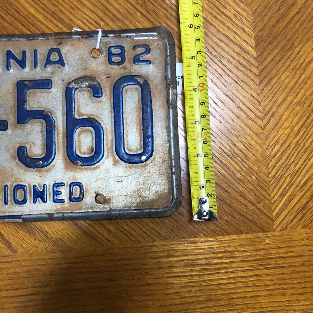 "Own a fun piece of Virginia history with this cool license plate from 1982! Vibrant white body with blue stripe with blue letters/numbers make this a fun piece for any wall and license plate measures 6"" height by 12"" length. (NOTE: Bent corners/rust/metal missing may exist per photos) If you choose to arrange to have an item shipped please make sure to insure the shipment as we are not responsible for damage that occurs in shipping. All items are sold “As Is� and all sales are final. Most pieces are one of a kind and can not be replaced. We will give you as much information as possible regarding the pieces condition including supplying additional pictures if needed. Due to the nature of antique and vintage items there may be blemishes, nicks or other imperfections as expected with age and use. If you want more information about an item, such as additional images or condition, please inquire! All items are located in our store at Standpipe Antiques, 502 O Neal Street, Belton, SC, 29627. Our hours are Wednesday through Friday 10am to 6pm, Saturday 10-5 and Sundays 12-5pm. Come by and see us!"