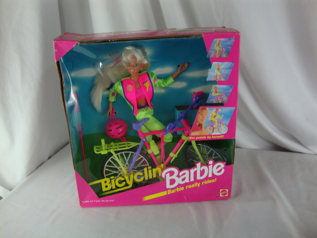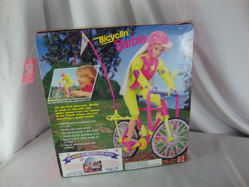 1993 Mattel Bicyclin' Barbie NIB with neon color Barbie cycling outfit complete with neon bike. Box has wear/tear, dents and is 13" height by 12" width by 3 1/2" depth. If you choose to arrange to have an item shipped please make sure to insure the shipment as we are not responsible for damage that occurs in shipping. All items are sold “As Is” and all sales are final. Most pieces are one of a kind and can not be replaced. We will give you as much information as possible regarding the pieces condition including supplying additional pictures if needed. Due to the nature of antique and vintage items there may be blemishes, nicks or other imperfections as expected with age and use. If you want more information about an item, such as additional images or condition, please inquire! All items are located in our store at Standpipe Antiques, 502 O Neal Street, Belton, SC, 29627. Our hours are Wednesday through Saturday 10am to 5pm and Sundays 12-5pm. Come by and see us!