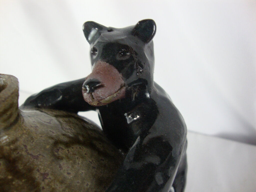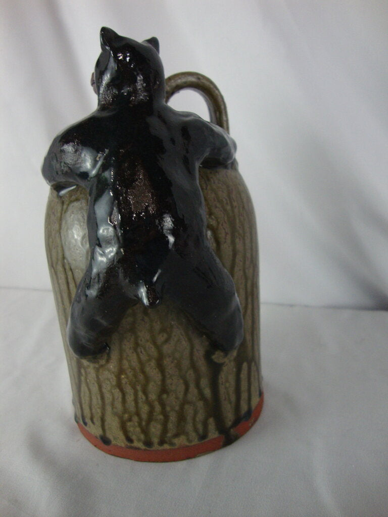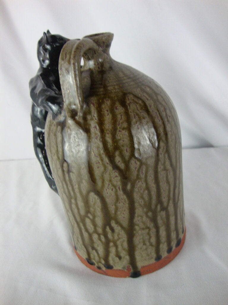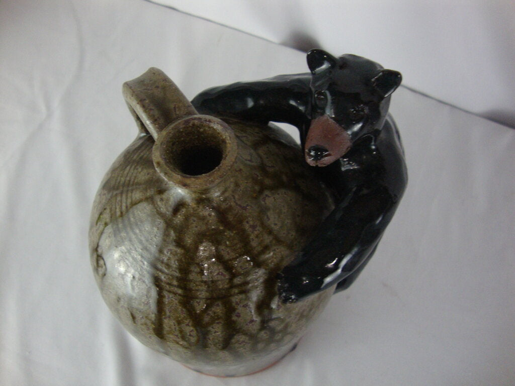 1996 Marvin Bailey SC Folk Art Potter black bear figure on olive green drip glaze pottery jug with side loop. Jug is signed on bottom, has wear/tear, flaws and measures about 5" bottom diameter by 9" bear height. If you choose to arrange to have an item shipped please make sure to insure the shipment as we are not responsible for damage that occurs in shipping. All items are sold “As Is” and all sales are final. Most pieces are one of a kind and can not be replaced. We will give you as much information as possible regarding the pieces condition including supplying additional pictures if needed. Due to the nature of antique and vintage items there may be blemishes, nicks or other imperfections as expected with age and use. If you want more information about an item, such as additional images or condition, please inquire! All items are located in our store at Standpipe Antiques, 502 O Neal Street, Belton, SC, 29627. Our hours are Wednesday through Saturday 10am to 5pm, Sundays 12-5pm. Come by and see us!