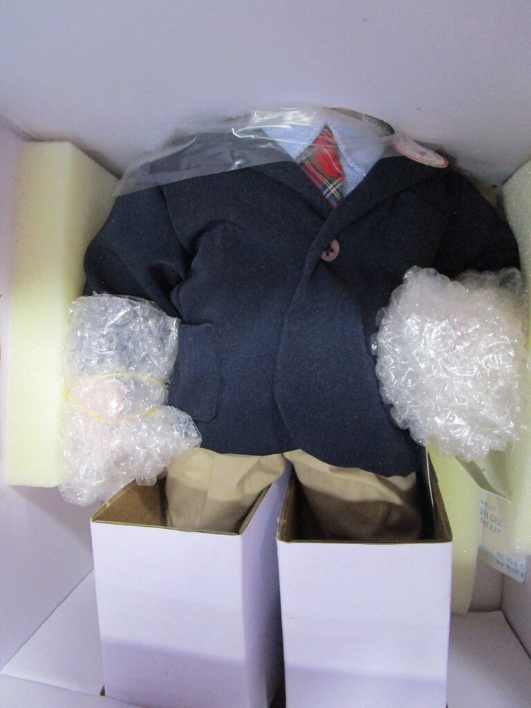 1995 Cabbage Patch porcelain collector doll named Charles Henry with fun tan pants, navy blazer with blue button up and red plaid tie and sign that says Elect Charles Henry Class President! Doll is about 14" height by 7" middle width. If you choose to arrange to have an item shipped please make sure to insure the shipment as we are not responsible for damage that occurs in shipping. All items are sold “As Is” and all sales are final. Most pieces are one of a kind and can not be replaced. We will give you as much information as possible regarding the pieces condition including supplying additional pictures if needed. Due to the nature of antique and vintage items there may be blemishes, nicks or other imperfections as expected with age and use. If you want more information about an item, such as additional images or condition, please inquire! All items are located in our store at Standpipe Antiques, 502 O Neal Street, Belton, SC, 29627. Our hours are Wednesday through Friday 10am to 6pm, Saturday 10am to 5pm and Sundays 12-5pm. Come by and see us!