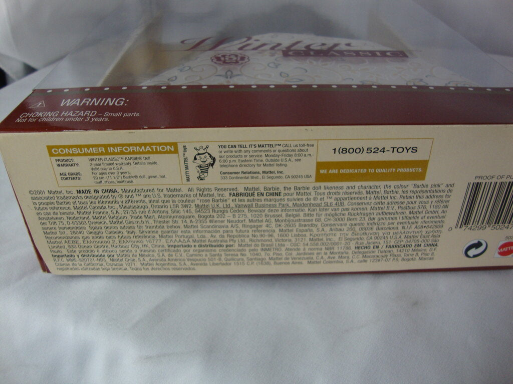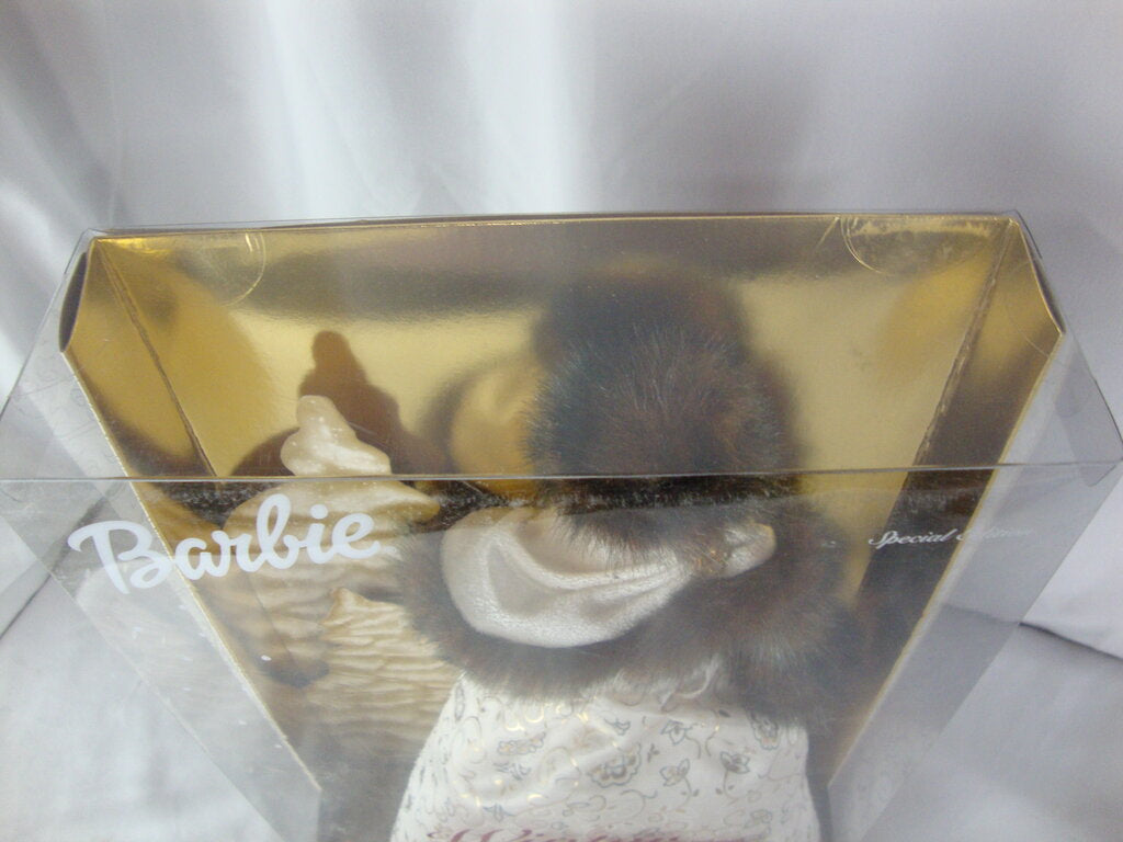 2001 Mattel Winter Classic Barbie NIB cream/gold leaf flower pattern long ball gown with brown faux fur wrap and hat. Box has wear/tear and measures approx. 9" across, 3" deep, and 13 1/2" tall. If you choose to arrange to have an item shipped please make sure to insure the shipment as we are not responsible for damage that occurs in shipping. All items are sold “As Is” and all sales are final. Most pieces are one of a kind and can not be replaced. We will give you as much information as possible regarding the pieces condition including supplying additional pictures if needed. Due to the nature of antique and vintage items there may be blemishes, nicks or other imperfections as expected with age and use. If you want more information about an item, such as additional images or condition, please inquire! All items are located in our store at Standpipe Antiques, 502 O Neal Street, Belton, SC, 29627. Our hours are Wednesday through Saturday 10am to 5pm and Sundays 12-5pm. Come by and see us!