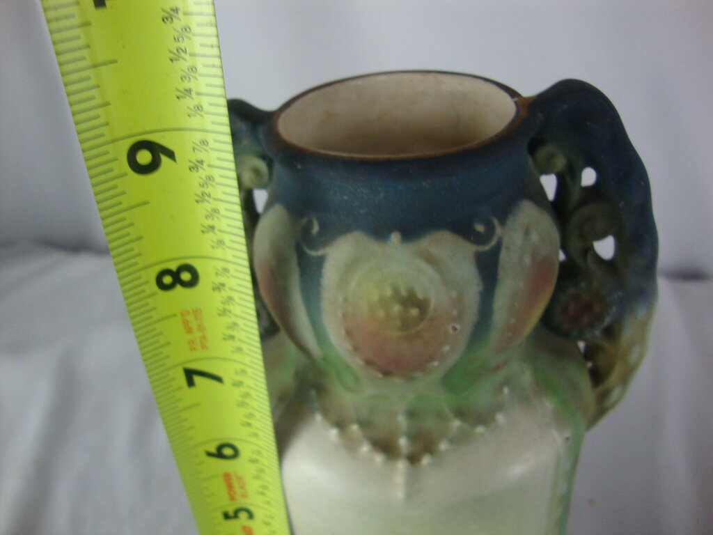 Charming antique Austrian floral rose vase with striking dark blue/green sides and top with pink blooming roses. Vase has wear/tear, flaws, pits, stains and measures about 8 1/2" height by 4" handle to handle width by 3" bottom diameter. If you choose to arrange to have an item shipped please make sure to insure the shipment as we are not responsible for damage that occurs in shipping. All items are sold “As Is” and all sales are final. Most pieces are one of a kind and can not be replaced. We will give you as much information as possible regarding the pieces condition including supplying additional pictures if needed. Due to the nature of antique and vintage items there may be blemishes, nicks or other imperfections as expected with age and use. If you want more information about an item, such as additional images or condition, please inquire! All items are located in our store at Standpipe Antiques, 502 O Neal Street, Belton, SC, 29627. Our hours are Wednesday through Saturday 10am to 5pm, Sundays 12-5pm. Come by and see us!
