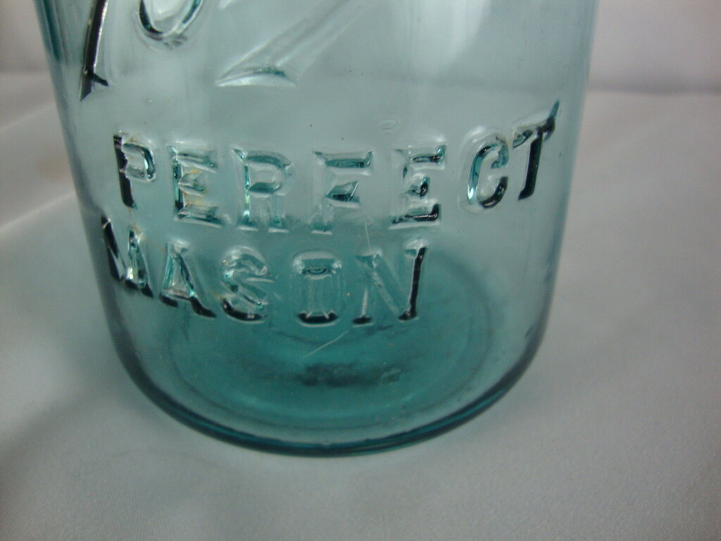 Antique Ball Perfect Mason aqua glass canning jar with offset printing error with Perfect Mason not aligned above each other on front. Jar has wear/tear, defects, printing error, no lid, flea bites along rim and measures about 3 1/2" bottom diameter by 7" height. If you choose to arrange to have an item shipped please make sure to insure the shipment as we are not responsible for damage that occurs in shipping. All items are sold “As Is” and all sales are final. Most pieces are one of a kind and can not be replaced. We will give you as much information as possible regarding the pieces condition including supplying additional pictures if needed. Due to the nature of antique and vintage items there may be blemishes, nicks or other imperfections as expected with age and use. If you want more information about an item, such as additional images or condition, please inquire! All items are located in our store at Standpipe Antiques, 502 O Neal Street, Belton, SC, 29627. Our hours are Wednesday through Saturday 10am to 5pm and Sundays 12-5pm. Come by and see us!