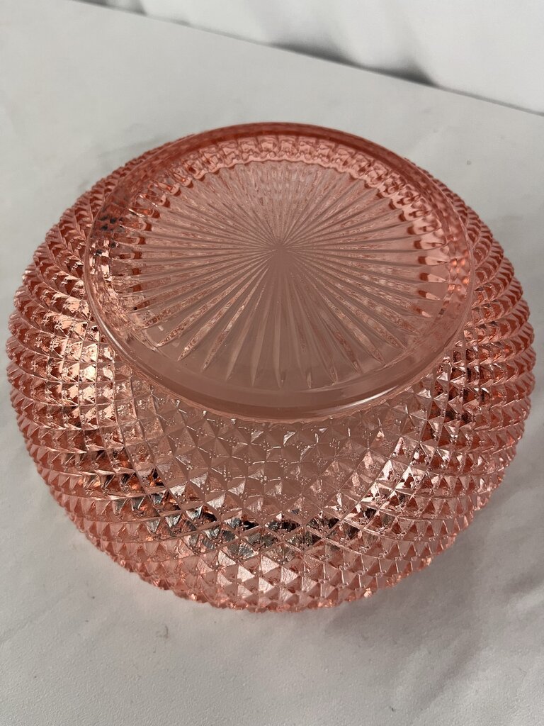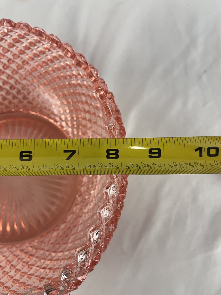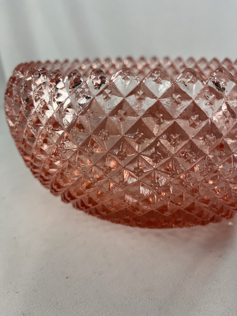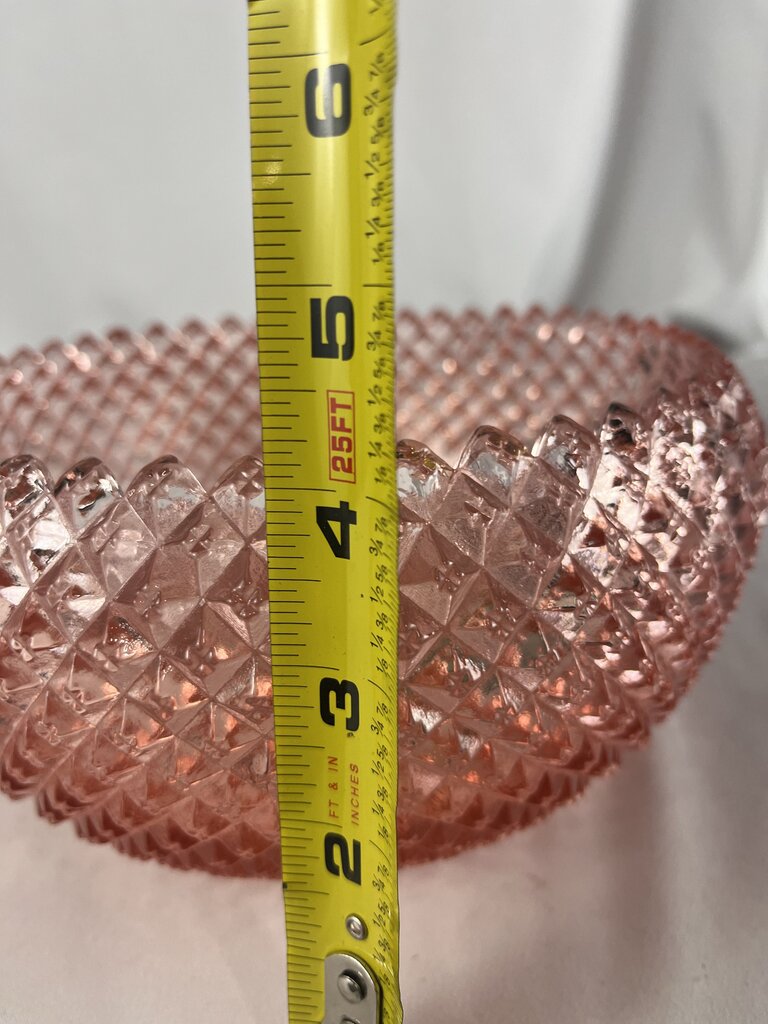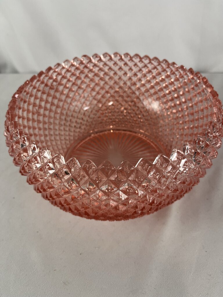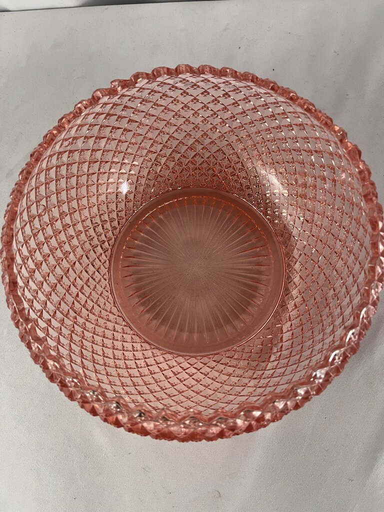 Jeanette Miss America Pink! Eat your salad in style! This lovely and HEAVY bowl will add flair to any setting. Set on the counter and fill with fruit. Or be bold and fill with glass fruit! Just warn people not to munch down.. that could hurt!