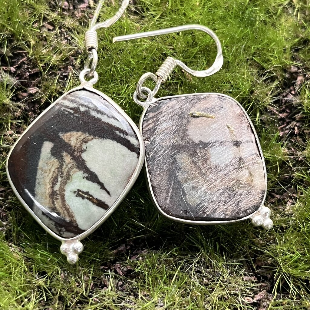 • Load image into Gallery viewer, Earrings, Sterling Silver, Picture Jasper