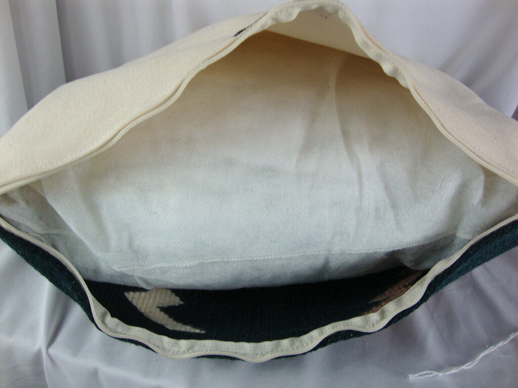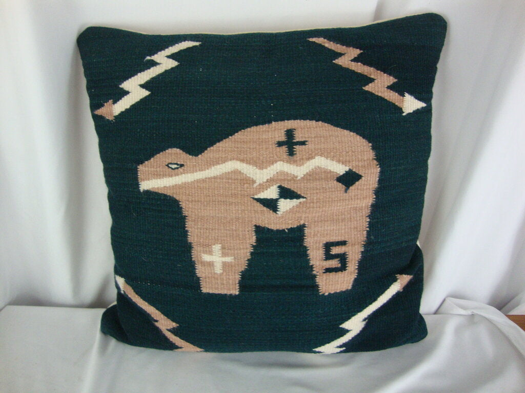 Adorable hand loomed in Mexico mohair accent pillow with dark green and peach animal on front with four side arrows with cream fabric back and polyester fill pillow form with zipper. Pillow has wear/tear and measures about 17" by 18". If you choose to arrange to have an item shipped please make sure to insure the shipment as we are not responsible for damage that occurs in shipping. All items are sold “As Is” and all sales are final. Most pieces are one of a kind and can not be replaced. We will give you as much information as possible regarding the pieces condition including supplying additional pictures if needed. Due to the nature of antique and vintage items there may be blemishes, nicks or other imperfections as expected with age and use. If you want more information about an item, such as additional images or condition, please inquire! All items are located in our store at Standpipe Antiques, 502 O Neal Street, Belton, SC, 29627. Our hours are Wednesday through Saturday 10am to 5pm and Sundays 12-5pm. Come by and see us!