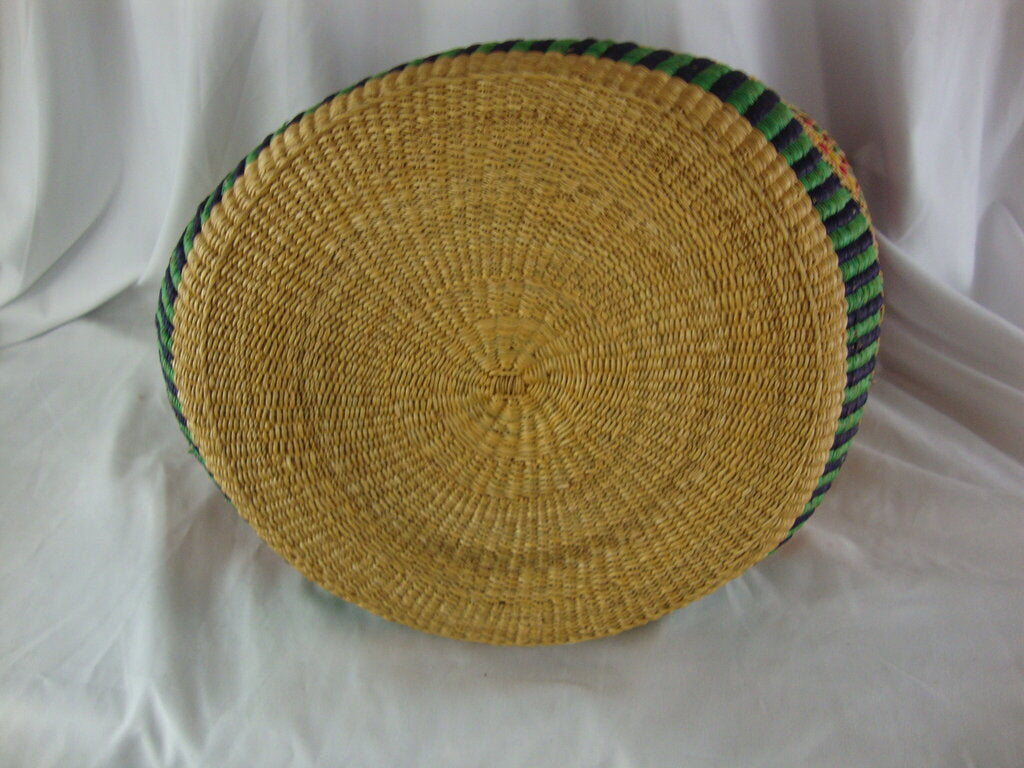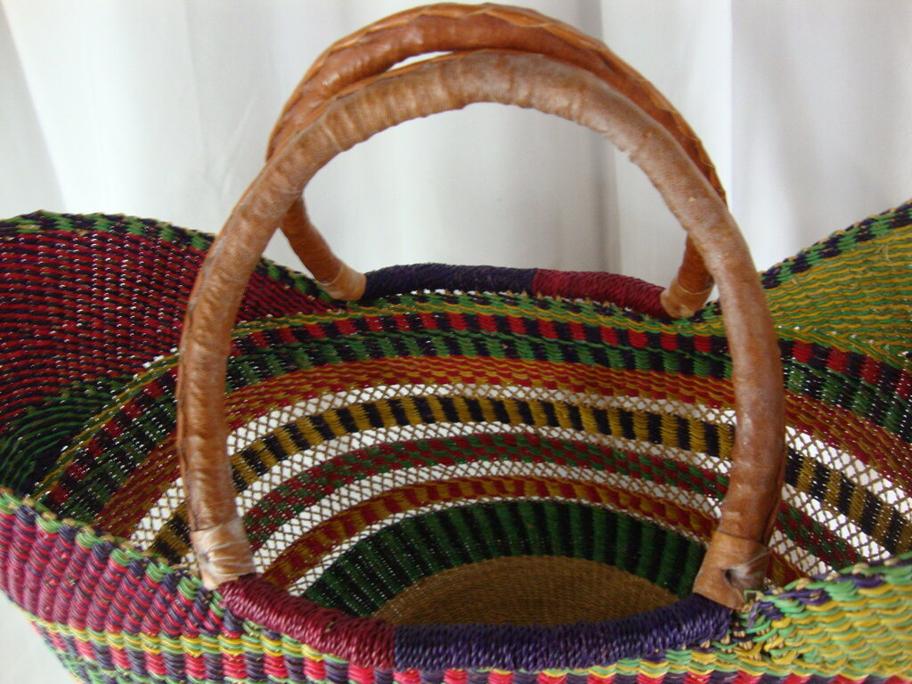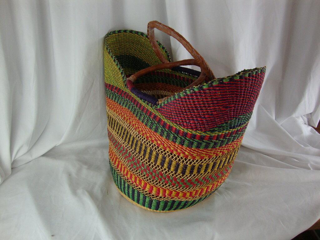 *THIS ITEM IS FOR PICKUP ONLY!* Like new handmade woven African Bolga market baset with leather handles and vibrant body in oranges, greens and reds. Basket is 15" side height by 11" middle height by 7" top depth by 19" top width. If you choose to arrange to have an item shipped please make sure to insure the shipment as we are not responsible for damage that occurs in shipping. All items are sold “As Is” and all sales are final. Most pieces are one of a kind and can not be replaced. We will give you as much information as possible regarding the pieces condition including supplying additional pictures if needed. Due to the nature of antique and vintage items there may be blemishes, nicks or other imperfections as expected with age and use. If you want more information about an item, such as additional images or condition, please inquire! All items are located in our store at Standpipe Antiques, 502 O Neal Street, Belton, SC, 29627. Our hours are Wednesday through Saturday 10am to 5pm, Sundays 12-5pm. Come by and see us!
