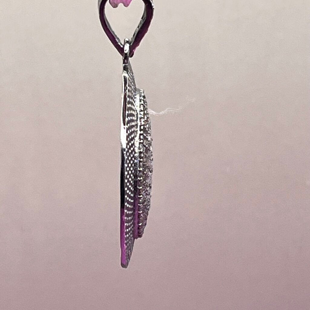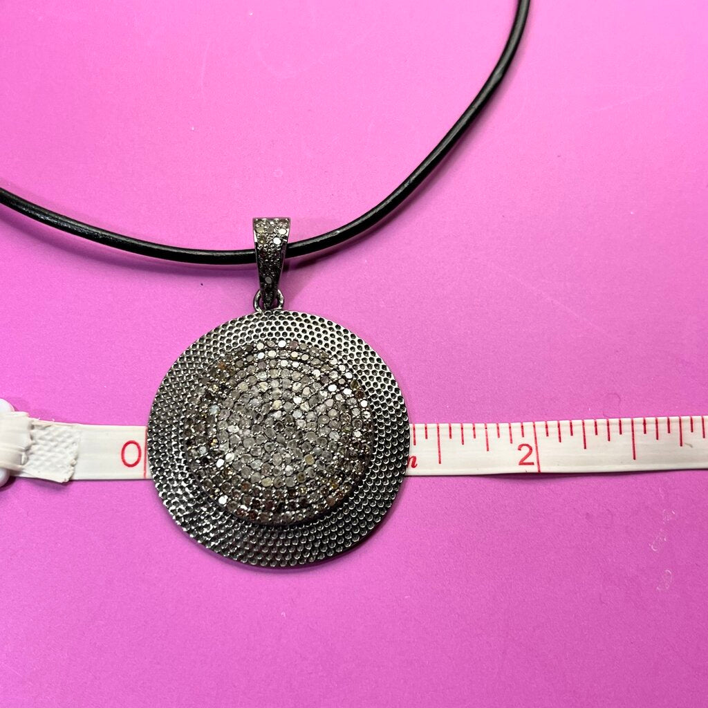 Diamonds set pave style in a medallion pendant on a leather cord. Simple. Elegant. Perfect.