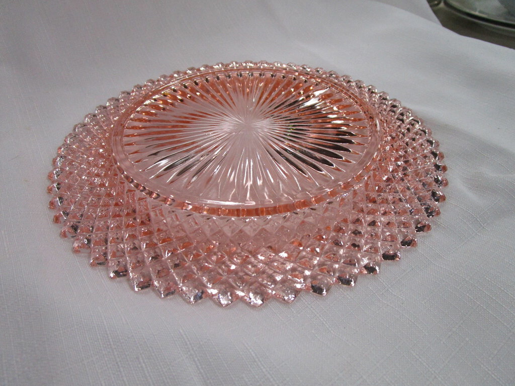Pretty in pink this Miss America vintage pink pressed glass luncheon plate will make any meal taste better! Plate is 8 1/2" top diameter. (NOTE: Wear, scratches, broken points may exist) If you choose to arrange to have an item shipped please make sure to insure the shipment as we are not responsible for damage that occurs in shipping. All items are sold “As Is” and all sales are final. Most pieces are one of a kind and can not be replaced. We will give you as much information as possible regarding the pieces condition including supplying additional pictures if needed. Due to the nature of antique and vintage items there may be blemishes, nicks or other imperfections as expected with age and use. If you want more information about an item, such as additional images or condition, please inquire! All items are located in our store at Standpipe Antiques, 502 O Neal Street, Belton, SC, 29627. Our hours are Wednesday through Friday 10am to 6pm, Saturday 10am to 5pm and Sundays 12-5pm. Come by and see us!