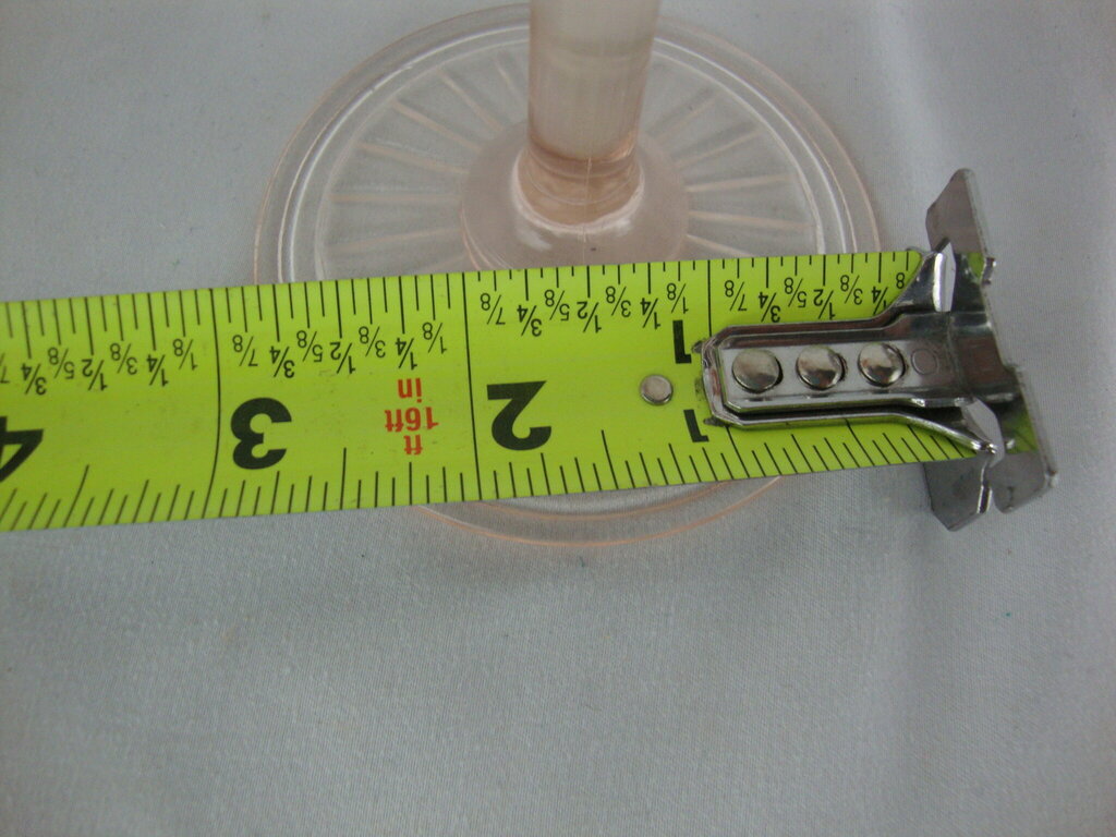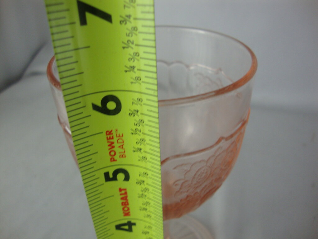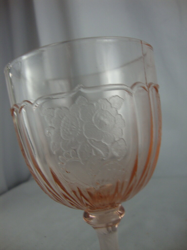 Vintage charming Anchor Hocking pink glass footed water goblet in Mayfair pattern with round base with flared glass with vertical ribs and tonal blooming flowers. Glass has wear/tear, rough edges along mold marks and measures about 5 3/4" height by 3 1/4" top and 2 3/4" bottom diameters. If you choose to arrange to have an item shipped please make sure to insure the shipment as we are not responsible for damage that occurs in shipping. All items are sold “As Is” and all sales are final. Most pieces are one of a kind and can not be replaced. We will give you as much information as possible regarding the pieces condition including supplying additional pictures if needed. Due to the nature of antique and vintage items there may be blemishes, nicks or other imperfections as expected with age and use. If you want more information about an item, such as additional images or condition, please inquire! All items are located in our store at Standpipe Antiques, 502 O Neal Street, Belton, SC, 29627. Our hours are Wednesday through Saturday 10am to 5pm, and Sundays 12-5pm. Come by and see us!