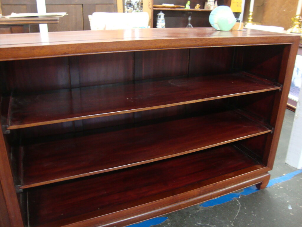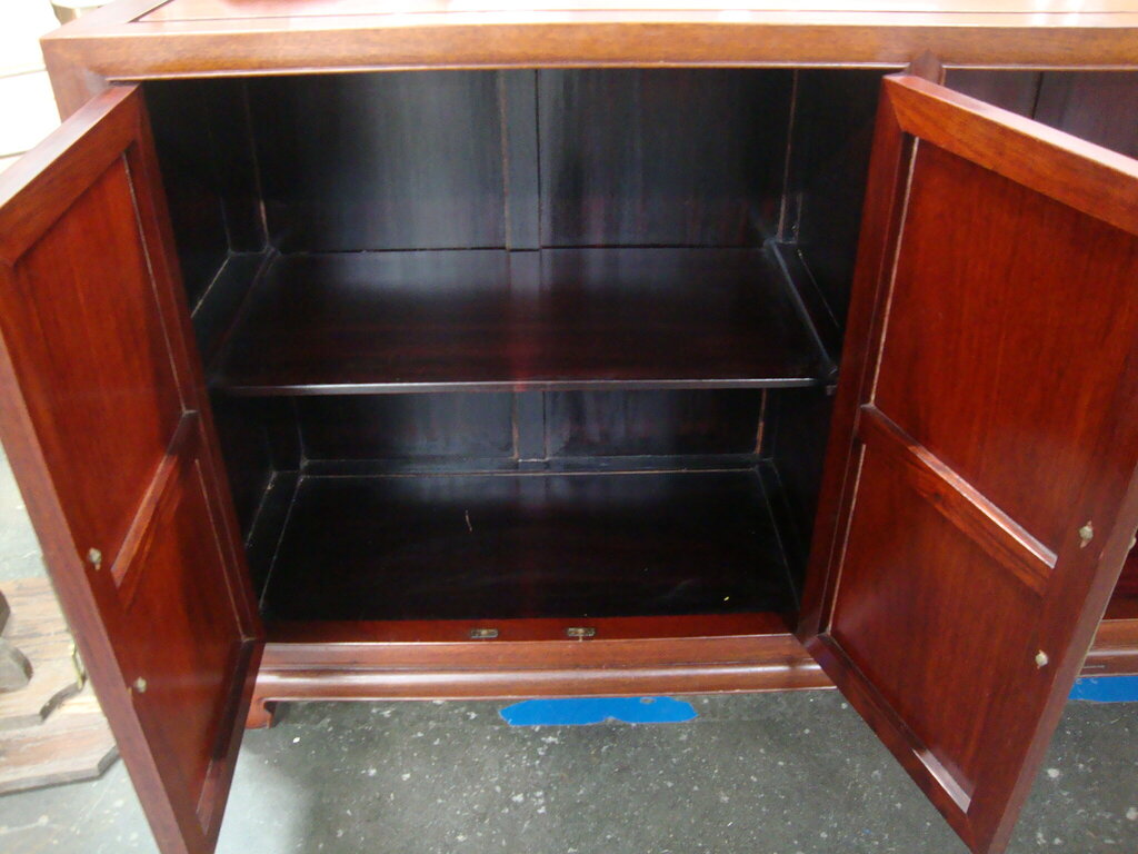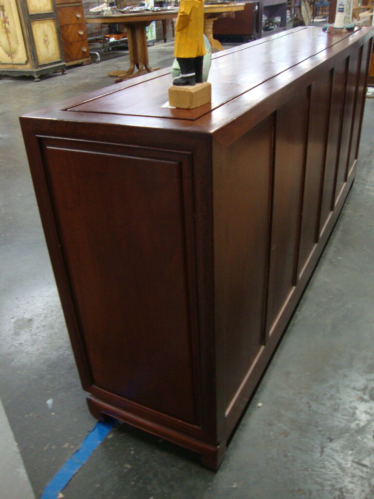 *THIS ITEM IS FOR PICKUP ONLY!* Vintage versatile Asian style long narrow cabinet with two side doors with long two shelf area for display. Great for tv stand, console table or entryway stand has wear/tear, finish loss and dings, top hardware ring missing on door and measures 30 1/2" height by 72" length by 14" depth by about 7 1/2" space in between shelves. If you choose to arrange to have an item shipped please make sure to insure the shipment as we are not responsible for damage that occurs in shipping. All items are sold “As Is” and all sales are final. Most pieces are one of a kind and can not be replaced. We will give you as much information as possible regarding the pieces condition including supplying additional pictures if needed. Due to the nature of antique and vintage items there may be blemishes, nicks or other imperfections as expected with age and use. If you want more information about an item, such as additional images or condition, please inquire! All items are located in our store at Standpipe Antiques, 502 O Neal Street, Belton, SC, 29627. Our hours are Wednesday through Saturday 10am to 5pm and Sundays 12-5pm. Come by and see us!