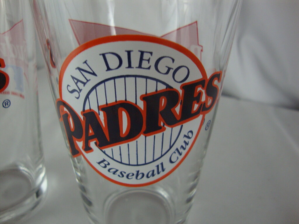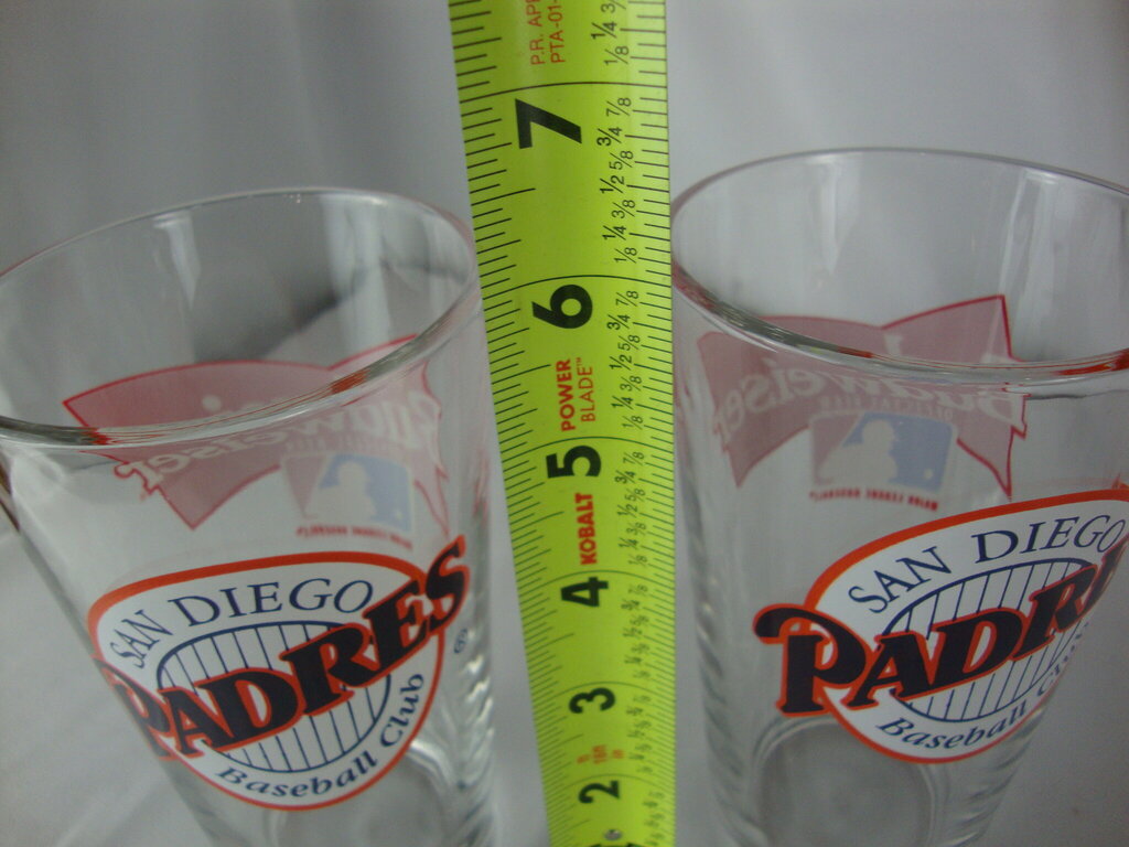 Vintage Budweiser San Diego Padres Baseball Club clear drinking glasses set of 2 with front round Padres logo with back Budweiser baseball logo. Glasses have wear/tear, one glass has surface scratch near top per photo and glasses are 6" height by 3 1/4" top diameter. If you choose to arrange to have an item shipped please make sure to insure the shipment as we are not responsible for damage that occurs in shipping. All items are sold “As Is” and all sales are final. Most pieces are one of a kind and can not be replaced. We will give you as much information as possible regarding the pieces condition including supplying additional pictures if needed. Due to the nature of antique and vintage items there may be blemishes, nicks or other imperfections as expected with age and use. If you want more information about an item, such as additional images or condition, please inquire! All items are located in our store at Standpipe Antiques, 502 O Neal Street, Belton, SC, 29627. Our hours are Wednesday through Saturday 10am to 5pm and Sundays 12-5pm. Come by and see us!
