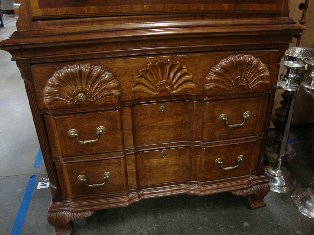 *THIS ITEM IS FOR PICKUP ONLY!* Impressive Chippendale style 11 drawer tall highboy dresser with three full lower drawers and three full upper with five half drawers, metal pull hardware and large arched open top. Highboy dresser has wear/tear, scratches, dings, one drawer pull missing and measures about 85" arch height by 40" lower width and 20" lower depth. If you choose to arrange to have an item shipped please make sure to insure the shipment as we are not responsible for damage that occurs in shipping. All items are sold “As Is” and all sales are final. Most pieces are one of a kind and can not be replaced. We will give you as much information as possible regarding the pieces condition including supplying additional pictures if needed. Due to the nature of antique and vintage items there may be blemishes, nicks or other imperfections as expected with age and use. If you want more information about an item, such as additional images or condition, please inquire! All items are located in our store at Standpipe Antiques, 502 O Neal Street, Belton, SC, 29627. Our hours are Wednesday through Friday thru Saturday 10am to 5pm, Sundays 12-5pm. Come by and see us!