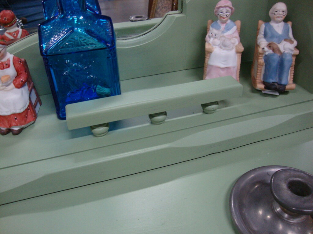 *THIS ITEM IS FOR PICKUP ONLY!* Vintage adorable updated 7 drawer dresser with sage green paint and modern black drawer hardware with removable top mirror with side shelves. Dresser has wear/tear and base measures about 30 1/2" height by 57" length by 17" depth and mirror is 43" height for total height of 74". If you choose to arrange to have an item shipped please make sure to insure the shipment as we are not responsible for damage that occurs in shipping. All items are sold “As Is” and all sales are final. Most pieces are one of a kind and can not be replaced. We will give you as much information as possible regarding the pieces condition including supplying additional pictures if needed. Due to the nature of antique and vintage items there may be blemishes, nicks or other imperfections as expected with age and use. If you want more information about an item, such as additional images or condition, please inquire! All items are located in our store at Standpipe Antiques, 502 O Neal Street, Belton, SC, 29627. Our hours are Wednesday through Saturday 10am to 5pm and Sundays 12-5pm. Come by and see us!