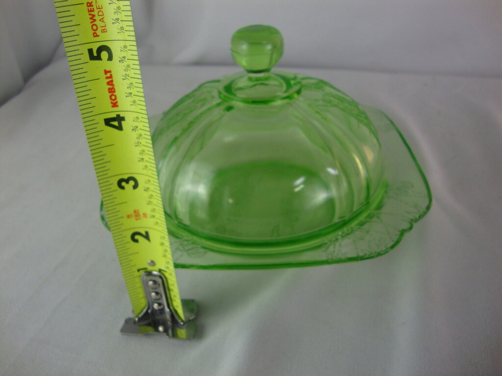 Vintage Federal Glass Parrot Uranium Depression Glass Covered Butter Dish