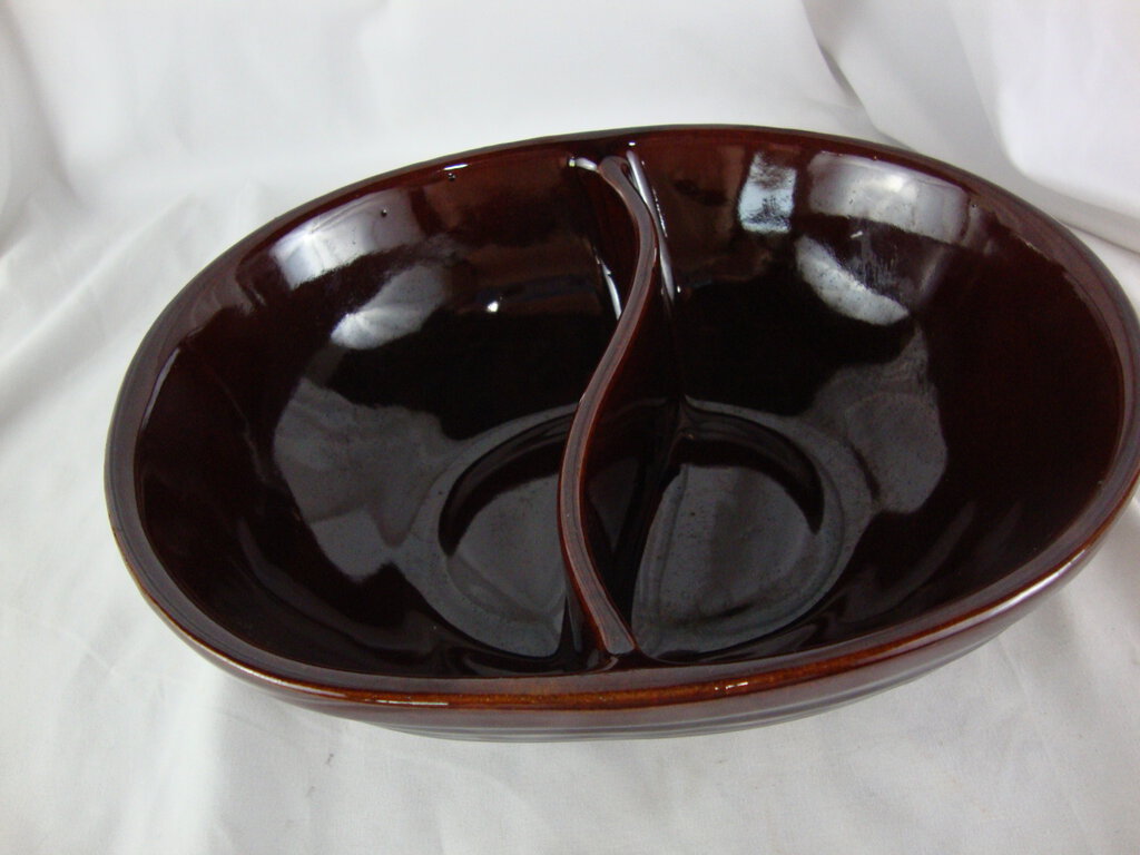 Vintage Marcrest Daisy Dot brown stoneware versatile divided deep dish with wavy center divider and brown exterior/interior. Bowl has wear/tear, production defects, hazing, small chips on lower exterior ridge per photo and measures 3 1/4" height by 10" length by 8" width. If you choose to arrange to have an item shipped please make sure to insure the shipment as we are not responsible for damage that occurs in shipping. All items are sold “As Is” and all sales are final. Most pieces are one of a kind and can not be replaced. We will give you as much information as possible regarding the pieces condition including supplying additional pictures if needed. Due to the nature of antique and vintage items there may be blemishes, nicks or other imperfections as expected with age and use. If you want more information about an item, such as additional images or condition, please inquire! All items are located in our store at Standpipe Antiques, 502 O Neal Street, Belton, SC, 29627. Our hours are Wednesday through Friday 10am to 6pm, Saturday 10am to 5pm and Sundays 12-5pm so come by and see us!