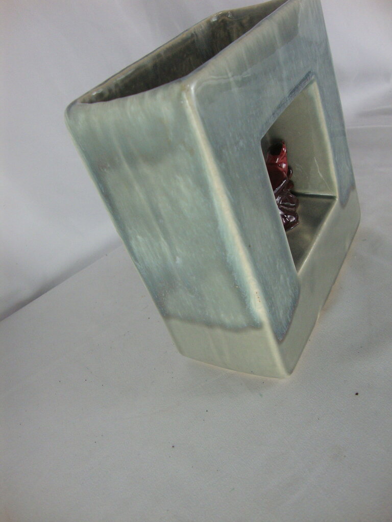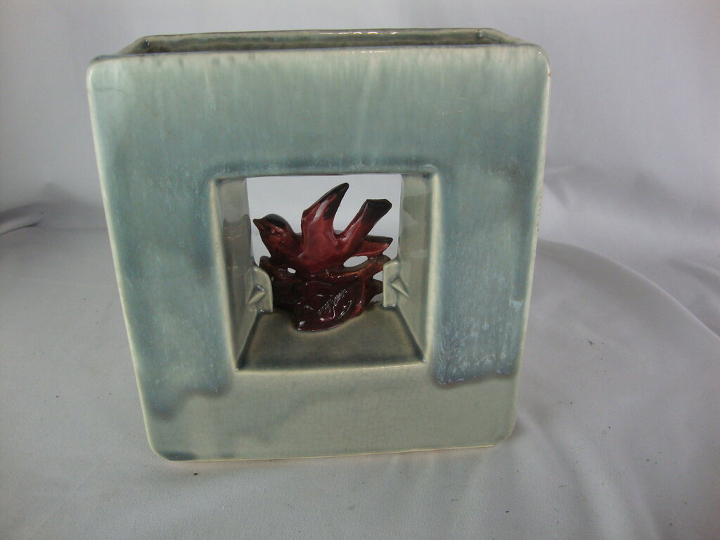 Vintage adorable McCoy gray pottery arcature square double vase with charming red bird in middle of square. Vase has wear/tear, production flaws, crazing and measures about 7" height by 6" width by 3" depth. If you choose to arrange to have an item shipped please make sure to insure the shipment as we are not responsible for damage that occurs in shipping. All items are sold “As Is” and all sales are final. Most pieces are one of a kind and can not be replaced. We will give you as much information as possible regarding the pieces condition including supplying additional pictures if needed. Due to the nature of antique and vintage items there may be blemishes, nicks or other imperfections as expected with age and use. If you want more information about an item, such as additional images or condition, please inquire! All items are located in our store at Standpipe Antiques, 502 O Neal Street, Belton, SC, 29627. Our hours are Wednesday through Saturday 10am to 5pm, Sundays 12-5pm. Come by and see us!