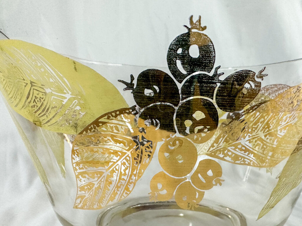 A lovely gold foil and cream leaf and berry design mid-century modern serving bowl. Perfect for salads, fruit, or any other dishes.