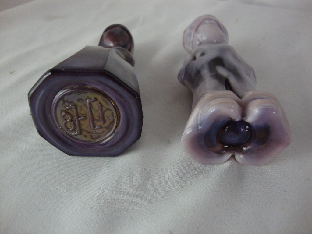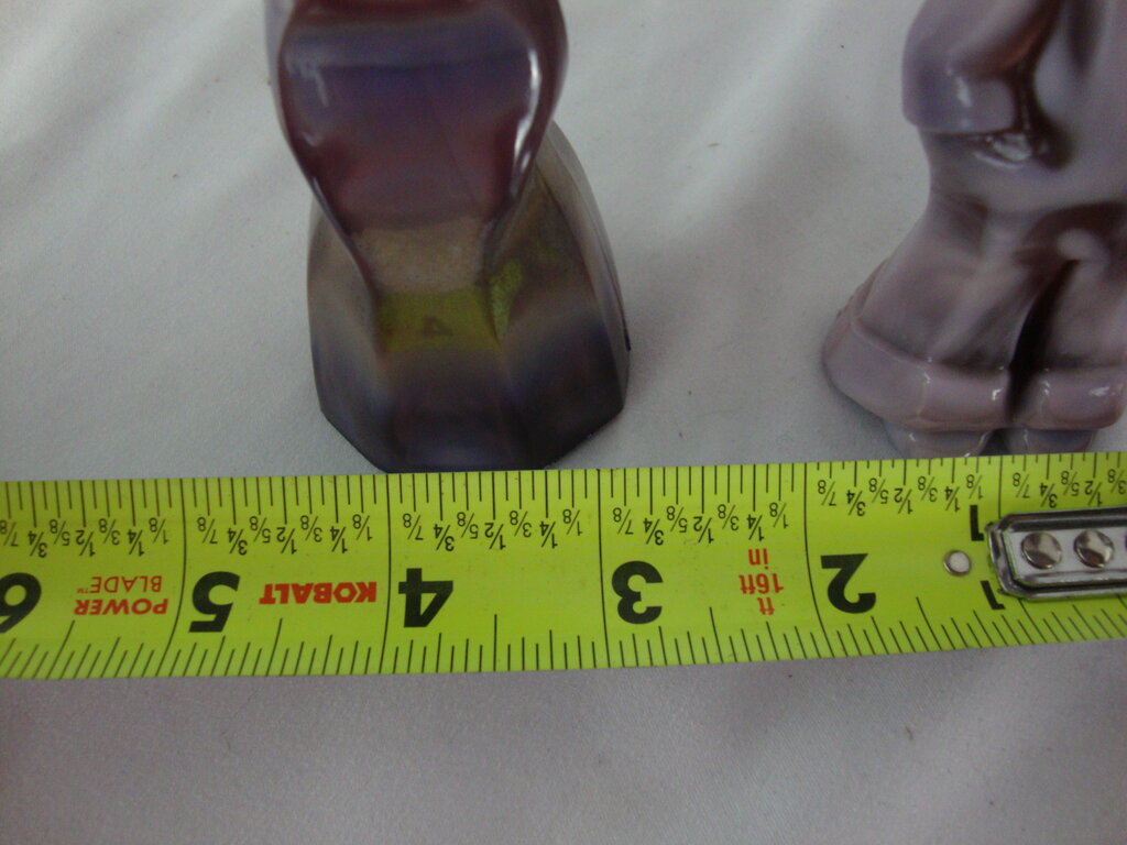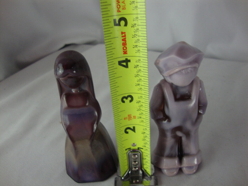 Vintage adorable Mosser Glass purple plum slag glass Josh and Jenny figurine pair with varying shades of purples with young girl in dress and young boy in overalls and hat. Pair measure about 4" height by 1 1/2" width by 1 1/2" depths. If you choose to arrange to have an item shipped please make sure to insure the shipment as we are not responsible for damage that occurs in shipping. All items are sold “As Is” and all sales are final. Most pieces are one of a kind and can not be replaced. We will give you as much information as possible regarding the pieces condition including supplying additional pictures if needed. Due to the nature of antique and vintage items there may be blemishes, nicks or other imperfections as expected with age and use. If you want more information about an item, such as additional images or condition, please inquire! All items are located in our store at Standpipe Antiques, 502 O Neal Street, Belton, SC, 29627. Our hours are Wednesday through Saturday 10am to 5pm and Sundays 12-5pm so come by and see us!