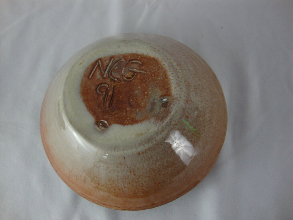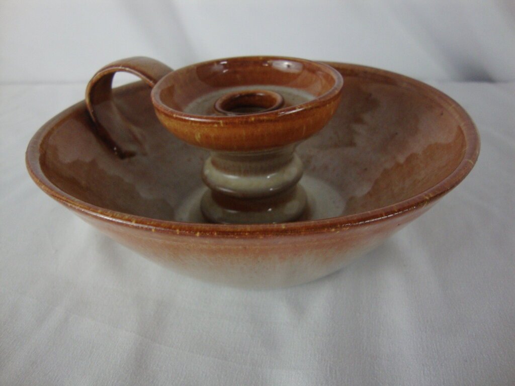 1991 Nell Cole Graves pottery candleholder with cream/brown body with shallow bowl with middle candleholder with loop handle. Holder has wear/tear, is handmade and measures about 3" height by 6 1/2" bowl diameter. If you choose to arrange to have an item shipped please make sure to insure the shipment as we are not responsible for damage that occurs in shipping. All items are sold “As Is” and all sales are final. Most pieces are one of a kind and can not be replaced. We will give you as much information as possible regarding the pieces condition including supplying additional pictures if needed. Due to the nature of antique and vintage items there may be blemishes, nicks or other imperfections as expected with age and use. If you want more information about an item, such as additional images or condition, please inquire! All items are located in our store at Standpipe Antiques, 502 O Neal Street, Belton, SC, 29627. Our hours are Wednesday through Saturday 10am to 5pm, Sundays 12-5pm. Come by and see us!