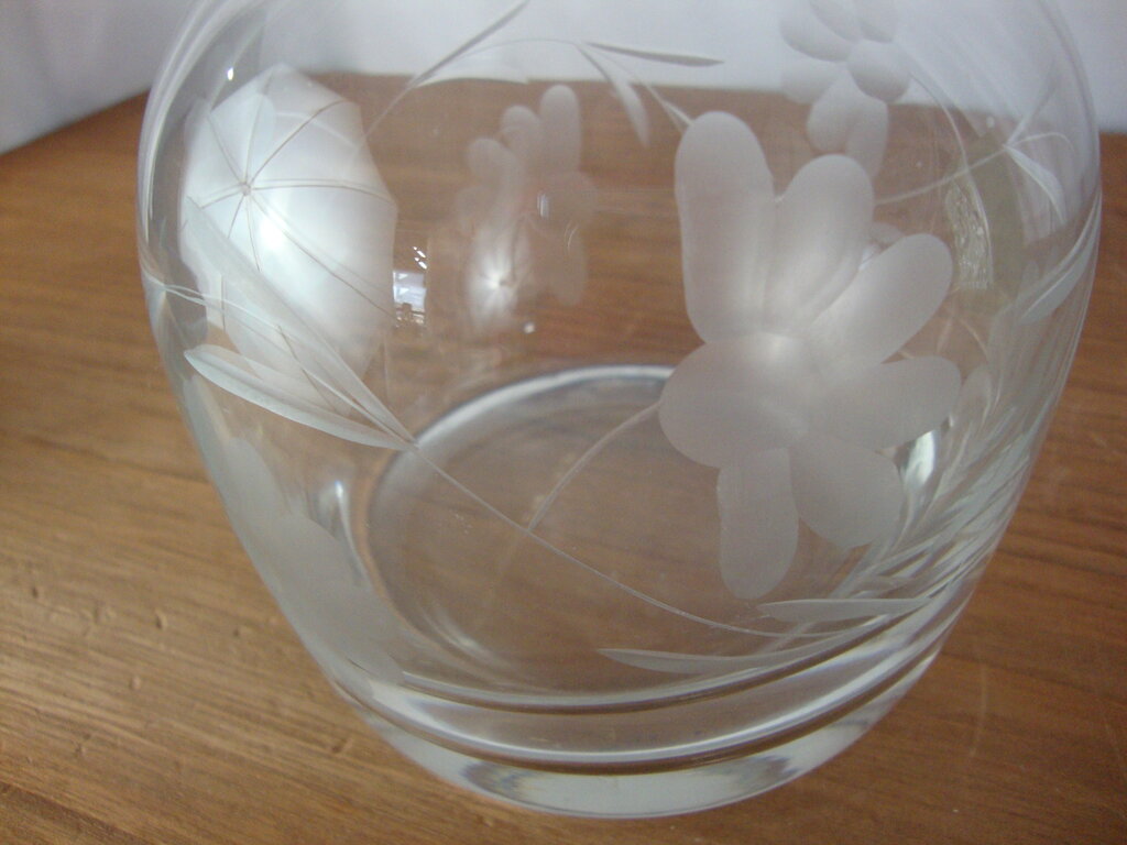 Vintage charming Princess House Heritage etched floral glass carafe decanter with bulb base with tall thin neck and tall glass stopper. Decanter has wear/tear and measures about 12" body and 16" stopper height by 5" lower body diameter. If you choose to arrange to have an item shipped please make sure to insure the shipment as we are not responsible for damage that occurs in shipping. All items are sold “As Is” and all sales are final. Most pieces are one of a kind and can not be replaced. We will give you as much information as possible regarding the pieces condition including supplying additional pictures if needed. Due to the nature of antique and vintage items there may be blemishes, nicks or other imperfections as expected with age and use. If you want more information about an item, such as additional images or condition, please inquire! All items are located in our store at Standpipe Antiques, 502 O Neal Street, Belton, SC, 29627. Our hours are Wednesday through Saturday 10am to 5pm and Sundays 12-5pm. Come by and see us!