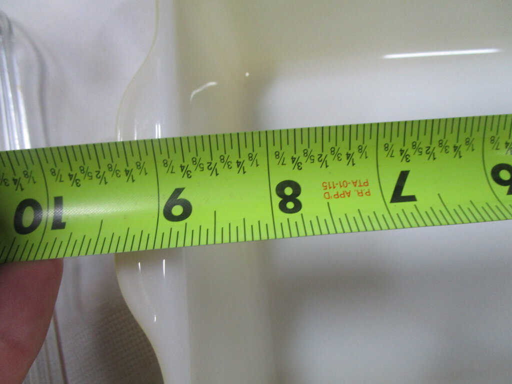 Charming vintage Pyrex sunshine yellow exterior refrigerator baking dish with white interior and clear ribbed glass lid. Dish has wear/tear, several scratches, stains per photos, flea bites along inner lid edge and measures about 2 1/2" height by 9 1/4" length by 6 3/4" depth. If you choose to arrange to have an item shipped please make sure to insure the shipment as we are not responsible for damage that occurs in shipping. All items are sold “As Is” and all sales are final. Most pieces are one of a kind and can not be replaced. We will give you as much information as possible regarding the pieces condition including supplying additional pictures if needed. Due to the nature of antique and vintage items there may be blemishes, nicks or other imperfections as expected with age and use. If you want more information about an item, such as additional images or condition, please inquire! All items are located in our store at Standpipe Antiques, 502 O Neal Street, Belton, SC, 29627. Our hours are Wednesday through Friday 10am to 6pm, Saturday 10am to 5pm and Sundays 12-5pm. Come by and see us!
