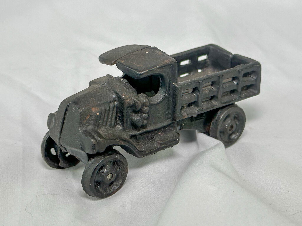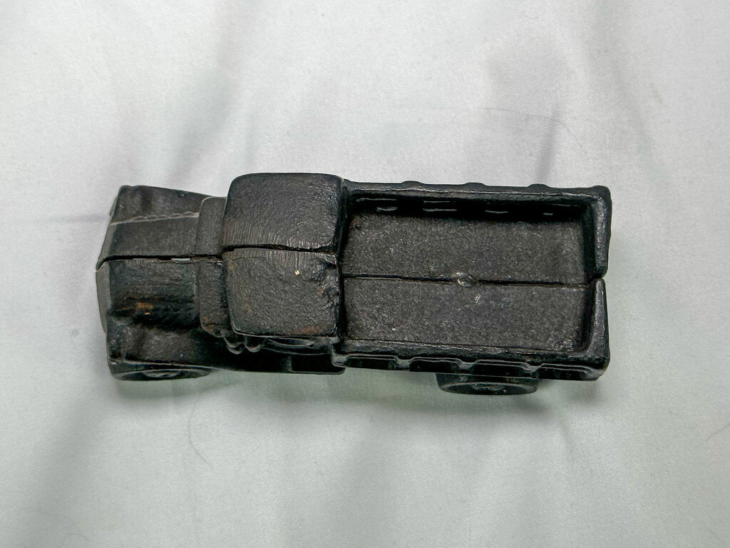 Between 30-60 years old. A lovely reproduction piece. This cast iron Mack C Truck toy is an adorable addition to a collection or a playroom. Sturdy construction and the wheels roll. No cracks.