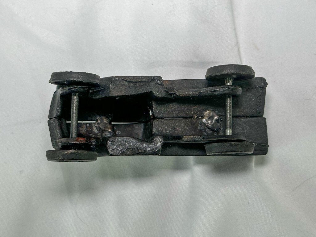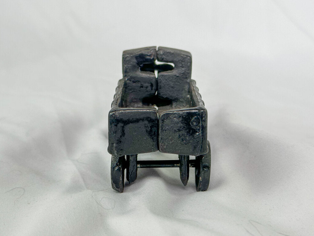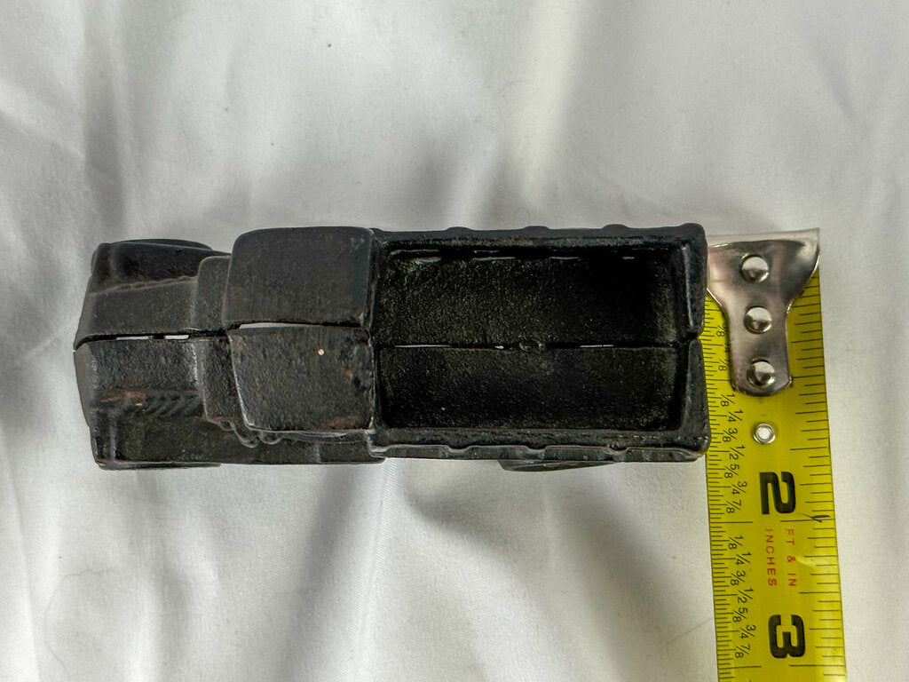 Measures approx. 4.5 inches long, 2 inches wide, and 2.5 inches tall. Couple of discolored/rusted spots.