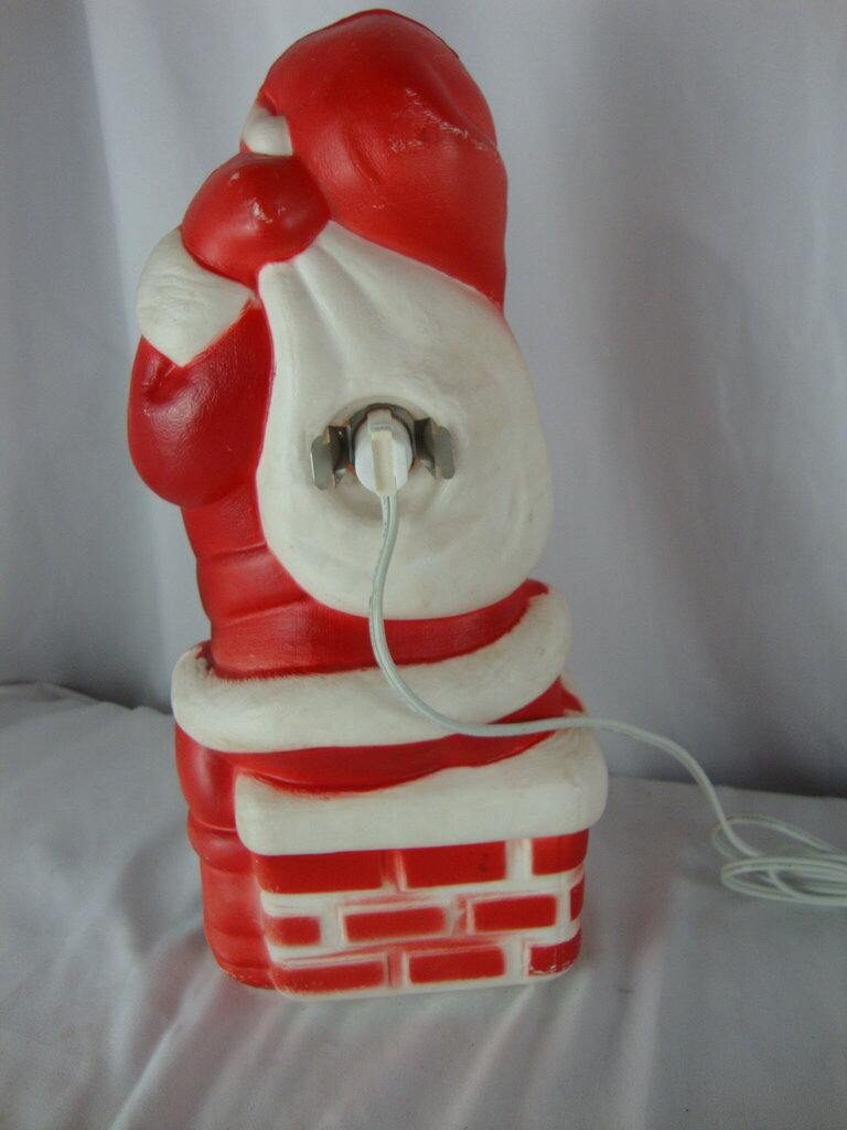 Vintage adorable small Santa with one leg in a red brick chimney with bag of gifts on his back. Santa has wear/tear, scratches, finish loss, replacement cord and measures about 13 1/2" height by 6" base width by 3" base depth. If you choose to arrange to have an item shipped please make sure to insure the shipment as we are not responsible for damage that occurs in shipping. All items are sold “As Is” and all sales are final. Most pieces are one of a kind and can not be replaced. We will give you as much information as possible regarding the pieces condition including supplying additional pictures if needed. Due to the nature of antique and vintage items there may be blemishes, nicks or other imperfections as expected with age and use. If you want more information about an item, such as additional images or condition, please inquire! All items are located in our store at Standpipe Antiques, 502 O Neal Street, Belton, SC, 29627. Our hours are Wednesday through Saturday 10am to 5pm, Sundays 12-5pm. Come by and see us!