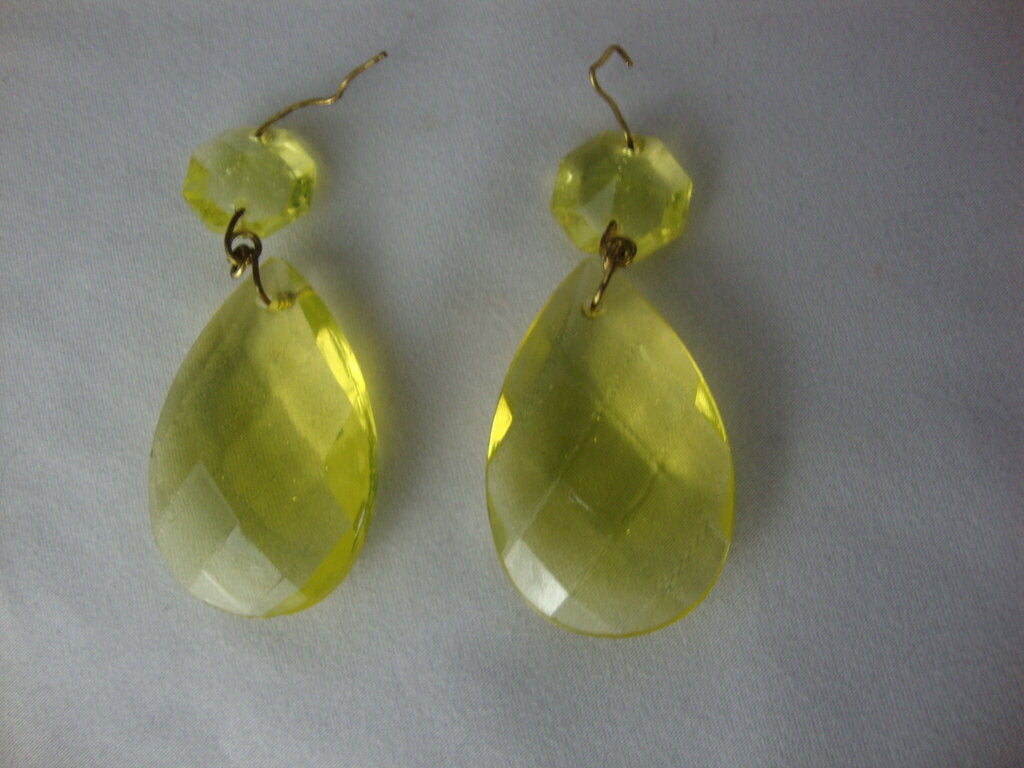 Vintage adorable canary yellow vaseline uranium glass teardrop and octagonal shapeds crystals set of 2 as shown. Crystals have wear/tear and measure about 1/2" octagon and 1" teardrop heights. If you choose to arrange to have an item shipped please make sure to insure the shipment as we are not responsible for damage that occurs in shipping. All items are sold “As Is” and all sales are final. Most pieces are one of a kind and can not be replaced. We will give you as much information as possible regarding the pieces condition including supplying additional pictures if needed. Due to the nature of antique and vintage items there may be blemishes, nicks or other imperfections as expected with age and use. If you want more information about an item, such as additional images or condition, please inquire! All items are located in our store at Standpipe Antiques, 502 O Neal Street, Belton, SC, 29627. Our hours are Wednesday through Saturday 10am to 5pm and Sundays 12-5pm so come by and see us!