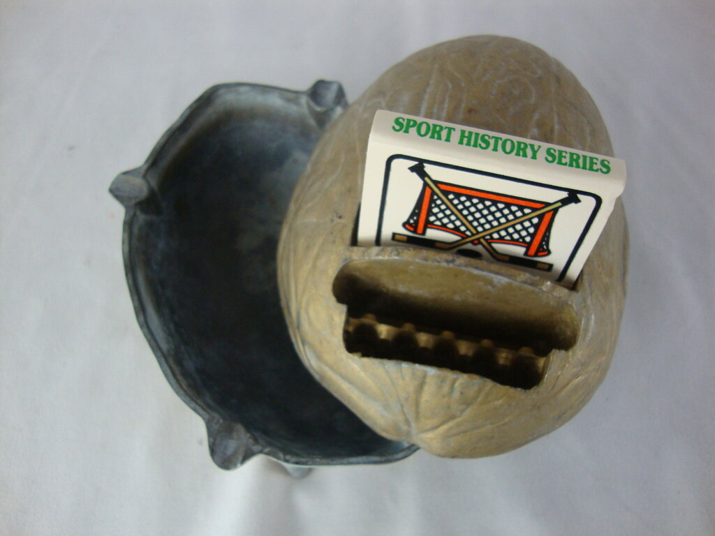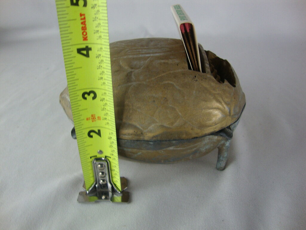 Vintage unusual metal footed ashtray in the shape of a walnut with sliding lid and top match and cigarette holders. Ashtray has wear/tear, finish loss, scratches and measures about 3" height by 5" length by 3 1/2" width. If you choose to arrange to have an item shipped please make sure to insure the shipment as we are not responsible for damage that occurs in shipping. All items are sold “As Is” and all sales are final. Most pieces are one of a kind and can not be replaced. We will give you as much information as possible regarding the pieces condition including supplying additional pictures if needed. Due to the nature of antique and vintage items there may be blemishes, nicks or other imperfections as expected with age and use. If you want more information about an item, such as additional images or condition, please inquire! All items are located in our store at Standpipe Antiques, 502 O Neal Street, Belton, SC, 29627. Our hours are Wednesday through Saturday 10am to 5pm, and Sundays 12-5pm. Come by and see us!