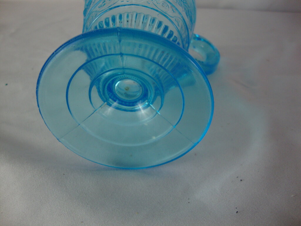 Vintage adorable Willow Oak pressed glass creamer small pitcher in lovely aqua glass with round pedestal base and flared body with loop handle. Creamer has wear/tear and measures 5 1/2" height by 3" base diameter by 3 1/2" top diameter. If you choose to arrange to have an item shipped please make sure to insure the shipment as we are not responsible for damage that occurs in shipping. All items are sold “As Is” and all sales are final. Most pieces are one of a kind and can not be replaced. We will give you as much information as possible regarding the pieces condition including supplying additional pictures if needed. Due to the nature of antique and vintage items there may be blemishes, nicks or other imperfections as expected with age and use. If you want more information about an item, such as additional images or condition, please inquire! All items are located in our store at Standpipe Antiques, 502 O Neal Street, Belton, SC, 29627. Our hours are Wednesday through Saturday 10am to 5pm, Sundays 12-5pm. Come by and see us!