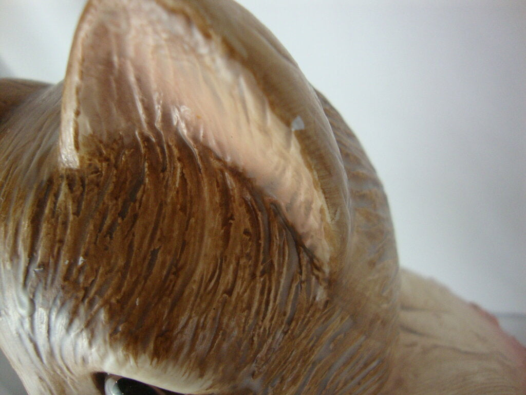 Vintage adorable Emily the Cat ceramic cookie jar with big brown eyed tan cat with cream dress with book and flowers in her arms. Jar has wear/tear, chip at ear per photo and measures about 11" height by 8" base width by 7" depth. If you choose to arrange to have an item shipped please make sure to insure the shipment as we are not responsible for damage that occurs in shipping. All items are sold “As Is” and all sales are final. Most pieces are one of a kind and can not be replaced. We will give you as much information as possible regarding the pieces condition including supplying additional pictures if needed. Due to the nature of antique and vintage items there may be blemishes, nicks or other imperfections as expected with age and use. If you want more information about an item, such as additional images or condition, please inquire! All items are located in our store at Standpipe Antiques, 502 O Neal Street, Belton, SC, 29627. Our hours are Wednesday through Saturday 10am to 5pm and Sundays 12-5pm so come by and see us!