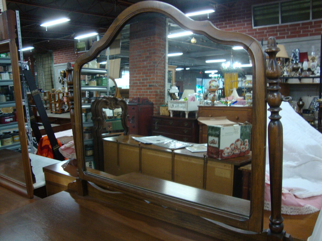 *THIS ITEM IS FOR PICKUP ONLY!* Look great everyday with this handsome vintage wood veneer two over two dresser with attached mirror! Dark wood veneer (NOTE: Veneer bubbling/cracking on middle drawer per photo #4) with raised burl wood details on middle drawer, cabriole legs and detachable tilt mirror with arch top. Dresser is 34" height, mirror is 32" height for total height of 66", 22" depth and 47" length. If you choose to arrange to have an item shipped please make sure to insure the shipment as we are not responsible for damage that occurs in shipping. All items are sold “As Is” and all sales are final. Most pieces are one of a kind and can not be replaced. We will give you as much information as possible regarding the pieces condition including supplying additional pictures if needed. Due to the nature of antique and vintage items there may be blemishes, nicks or other imperfections as expected with age and use. If you want more information about an item, such as additional images or condition, please inquire! All items are located in our store at Standpipe Antiques, 502 O Neal Street, Belton, SC, 29627. Our hours are Wednesday through Friday 10am to 6pm, Saturday 10am to 5pm and Sundays 12-5pm so come by and see us!.