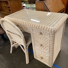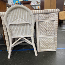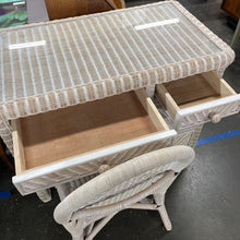 • Load image into Gallery viewer, White Wicker Four Drawer Desk with Glass Insert and Wicker Desk Chair Set