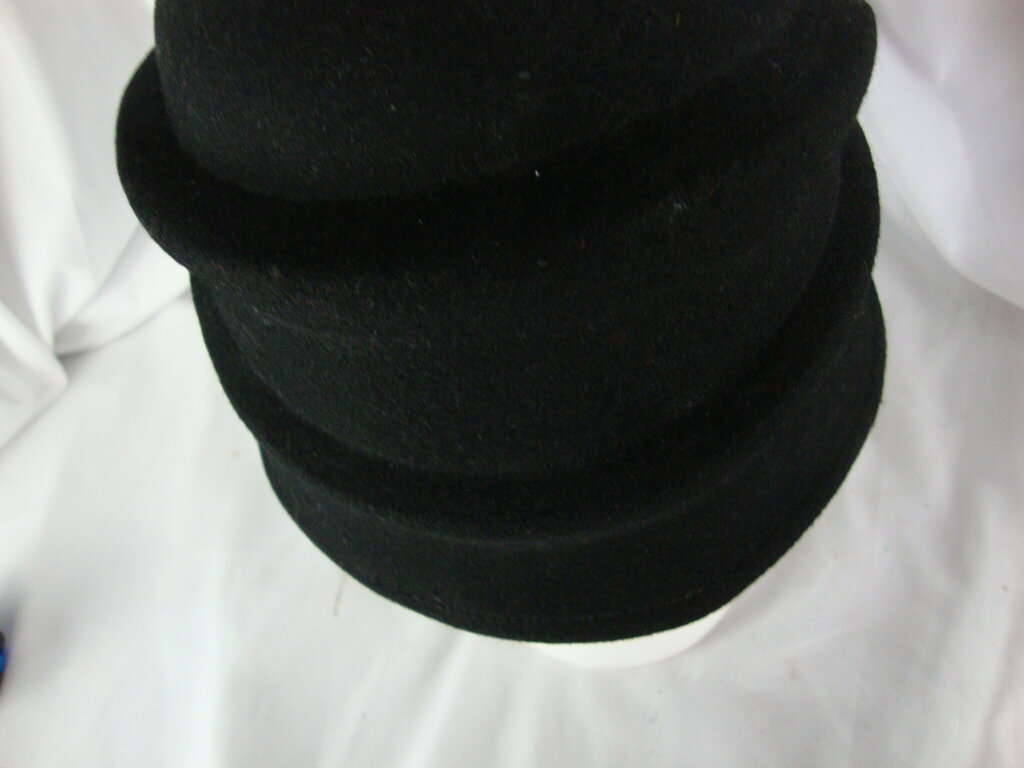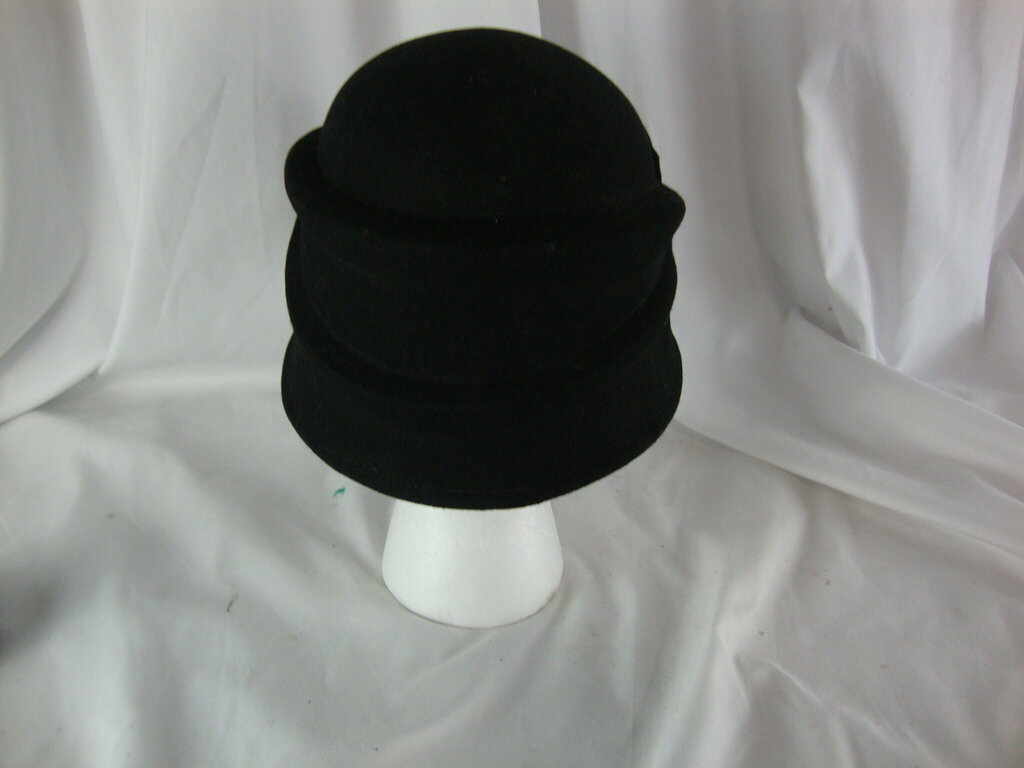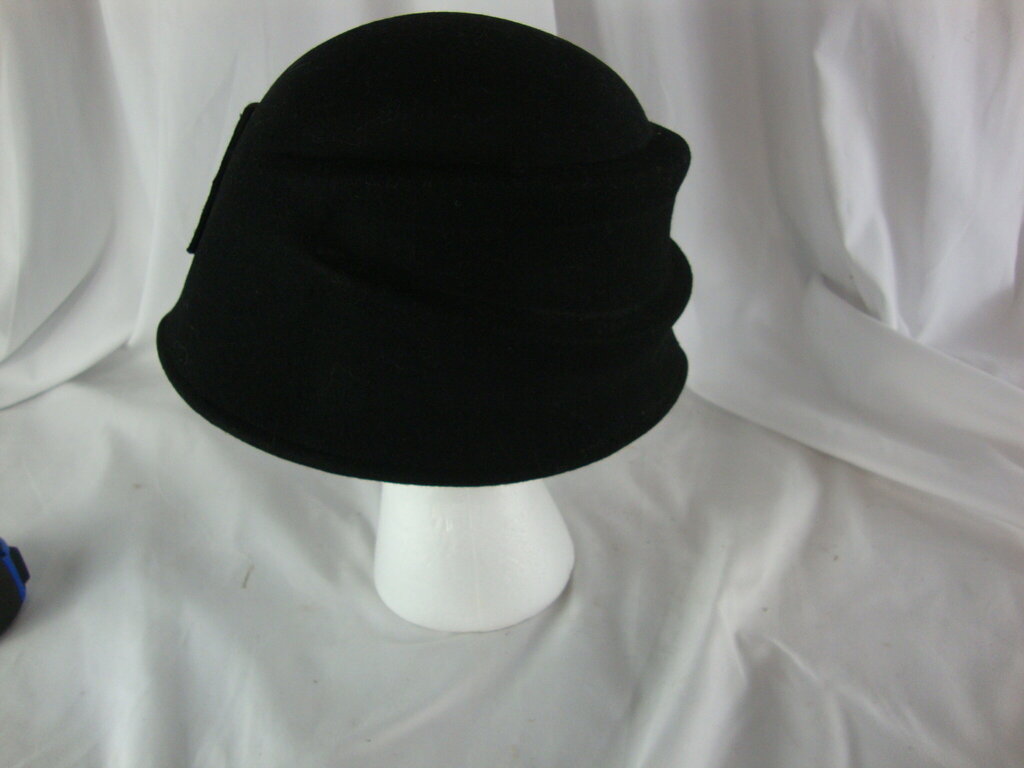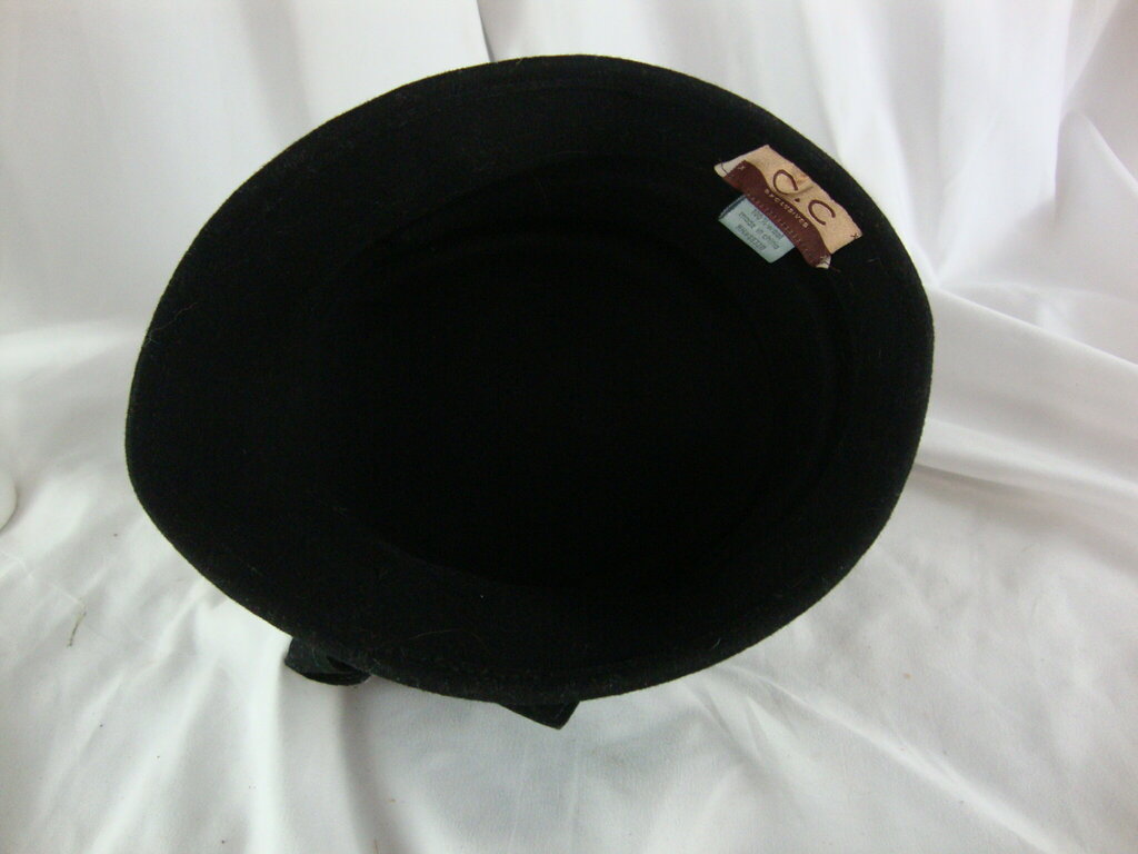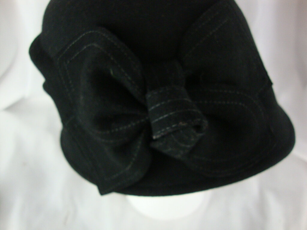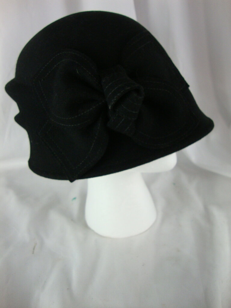 Women's 100% CC Exclusives black wool flapper style winter hat with black bow. Hat has minimal wear/tear and is one size fits most. If you choose to arrange to have an item shipped please make sure to insure the shipment as we are not responsible for damage that occurs in shipping. All items are sold “As Is” and all sales are final. Most pieces are one of a kind and can not be replaced. We will give you as much information as possible regarding the pieces condition including supplying additional pictures if needed. Due to the nature of antique and vintage items there may be blemishes, nicks or other imperfections as expected with age and use. If you want more information about an item, such as additional images or condition, please inquire! All items are located in our store at Standpipe Antiques, 502 O Neal Street, Belton, SC, 29627. Our hours are Wednesday through Saturday 10am to 5pm and Sundays 12-5pm. Come by and see us!